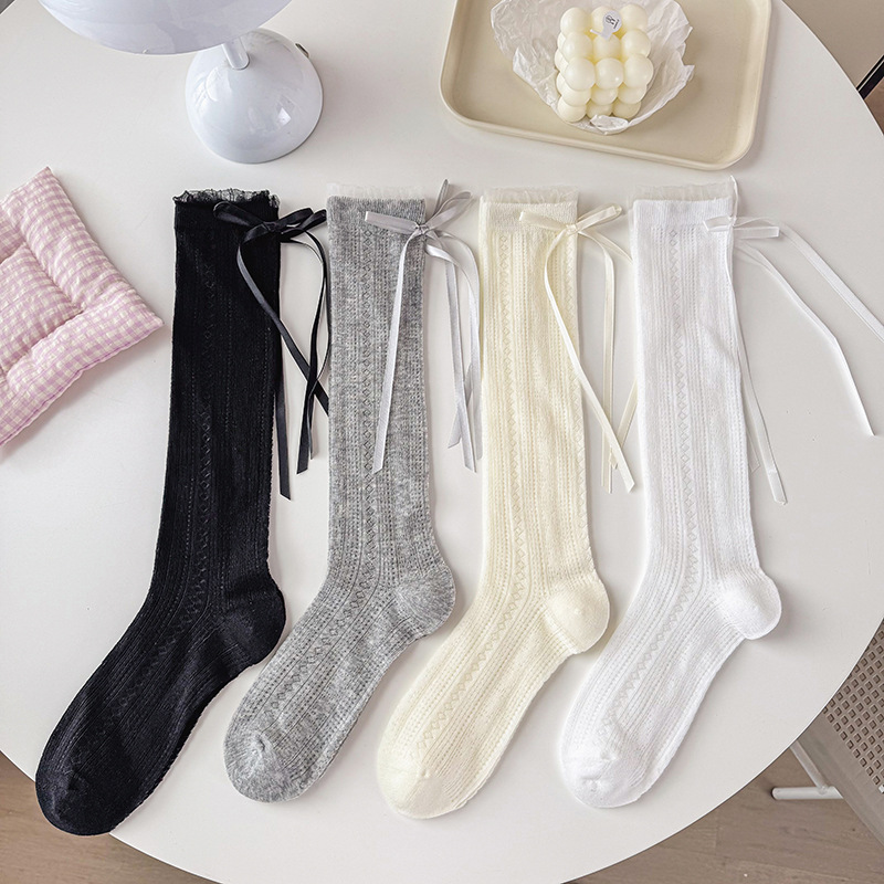 콤비네이션 코튼 극도로 안티 스타킹 시리즈 종아리 양말 얇은 리본 양말 소녀 양말 솔리드 컬러 중공 요정 양말스토어 가기