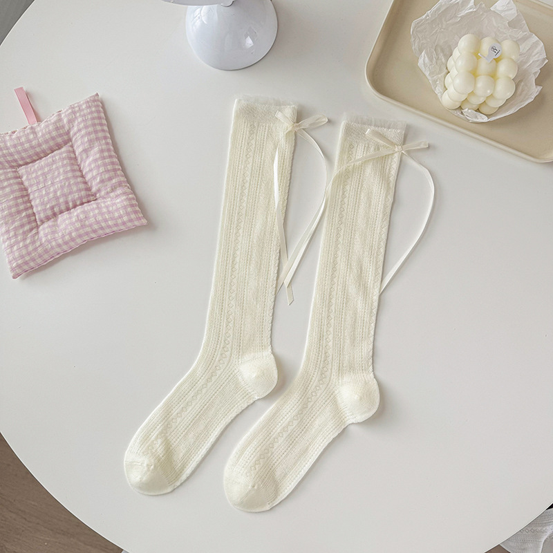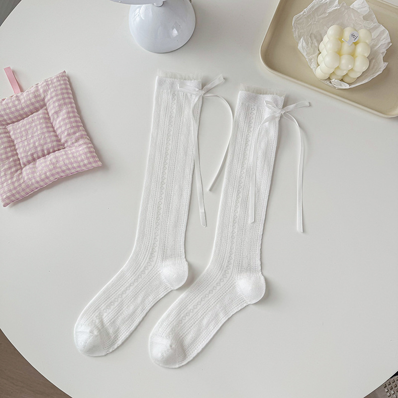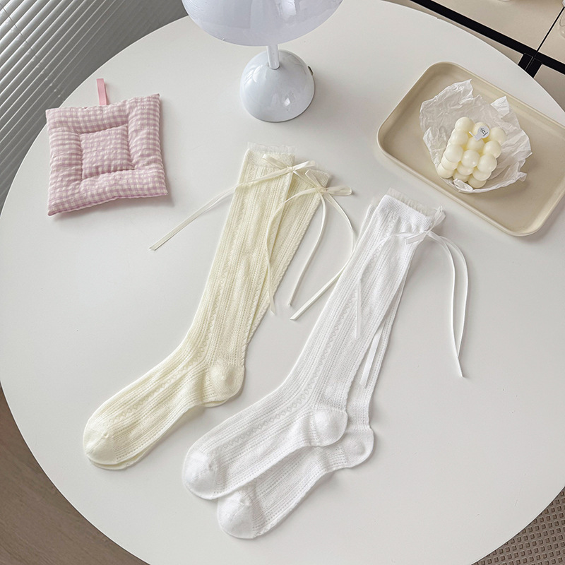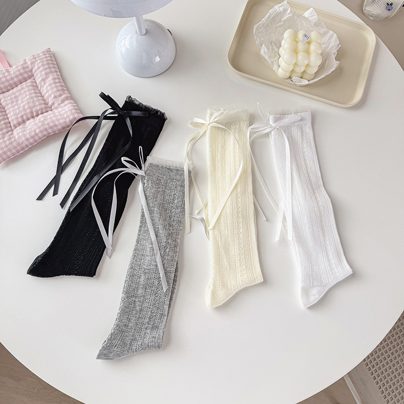 콤비네이션 코튼 극도로 안티 스타킹 시리즈 종아리 양말 얇은 리본 양말 소녀 양말 솔리드 컬러 중공 요정 양말