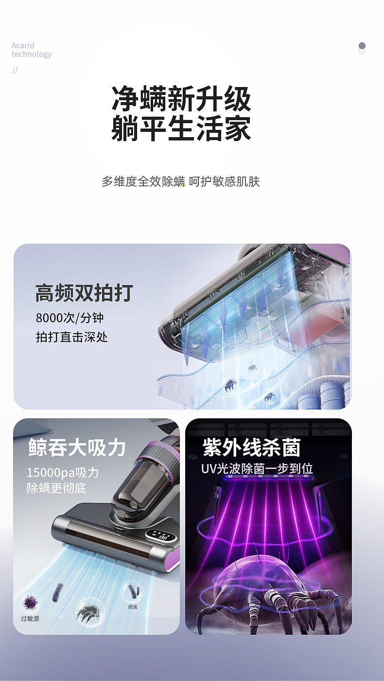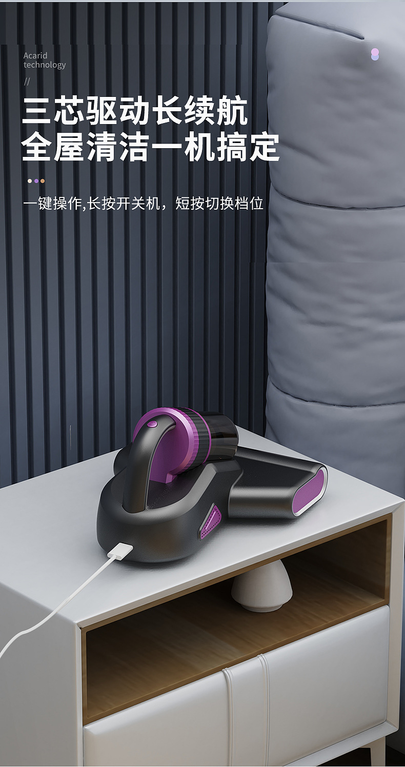 진드기를 제거하는 가정용 침대 휴대용 무선 롤러 브러시, 진드기를 제거하는 자외선 살균 장치, 소형 진공 청소기