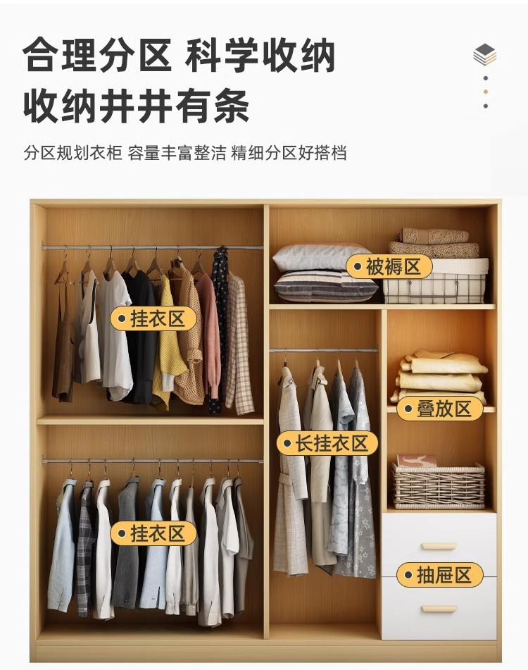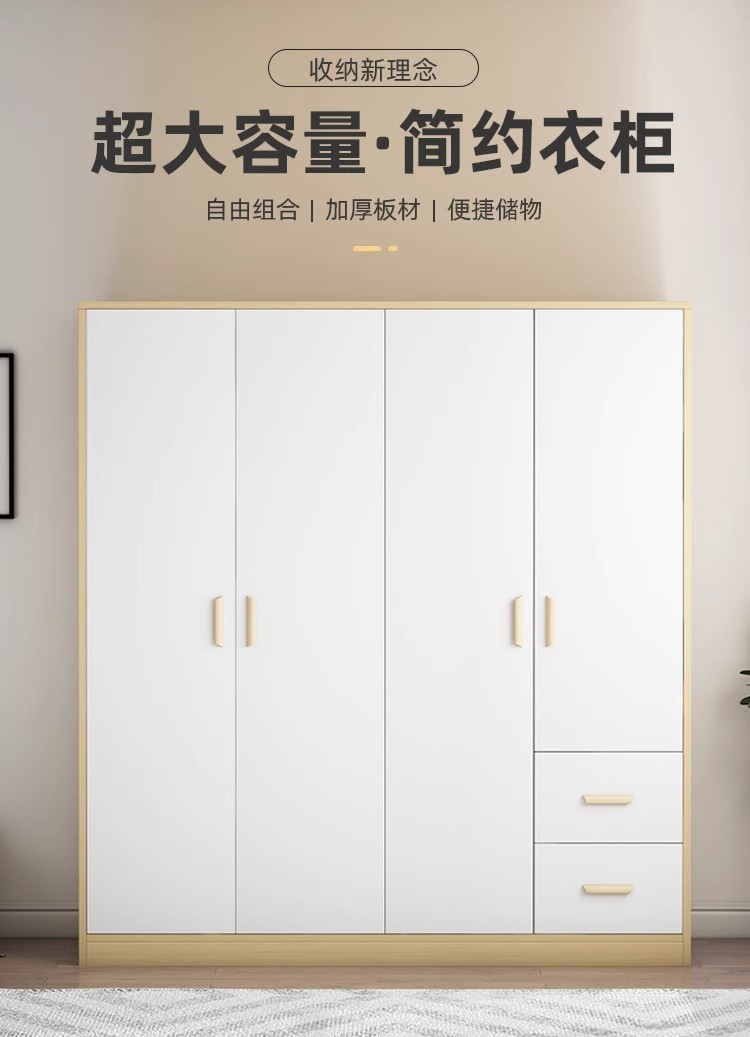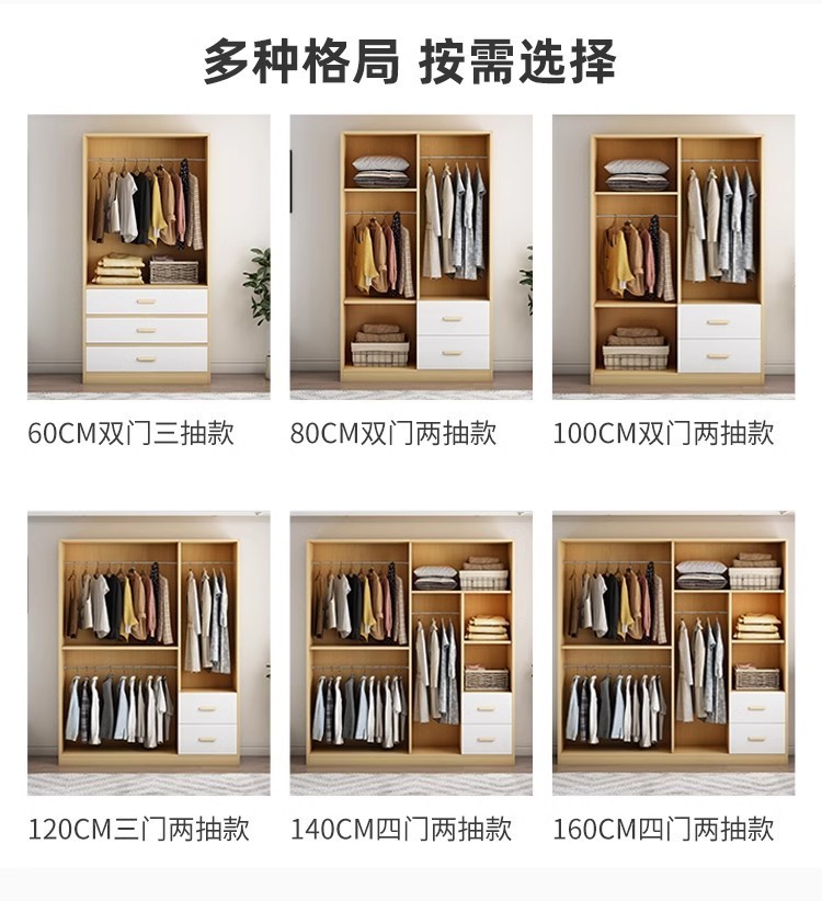 가정용 침실용 옷장, 간단한 임대실, 단단한 나무로 만든 성인용 대형 옷장, 고급스럽고 대용량스토어 가기