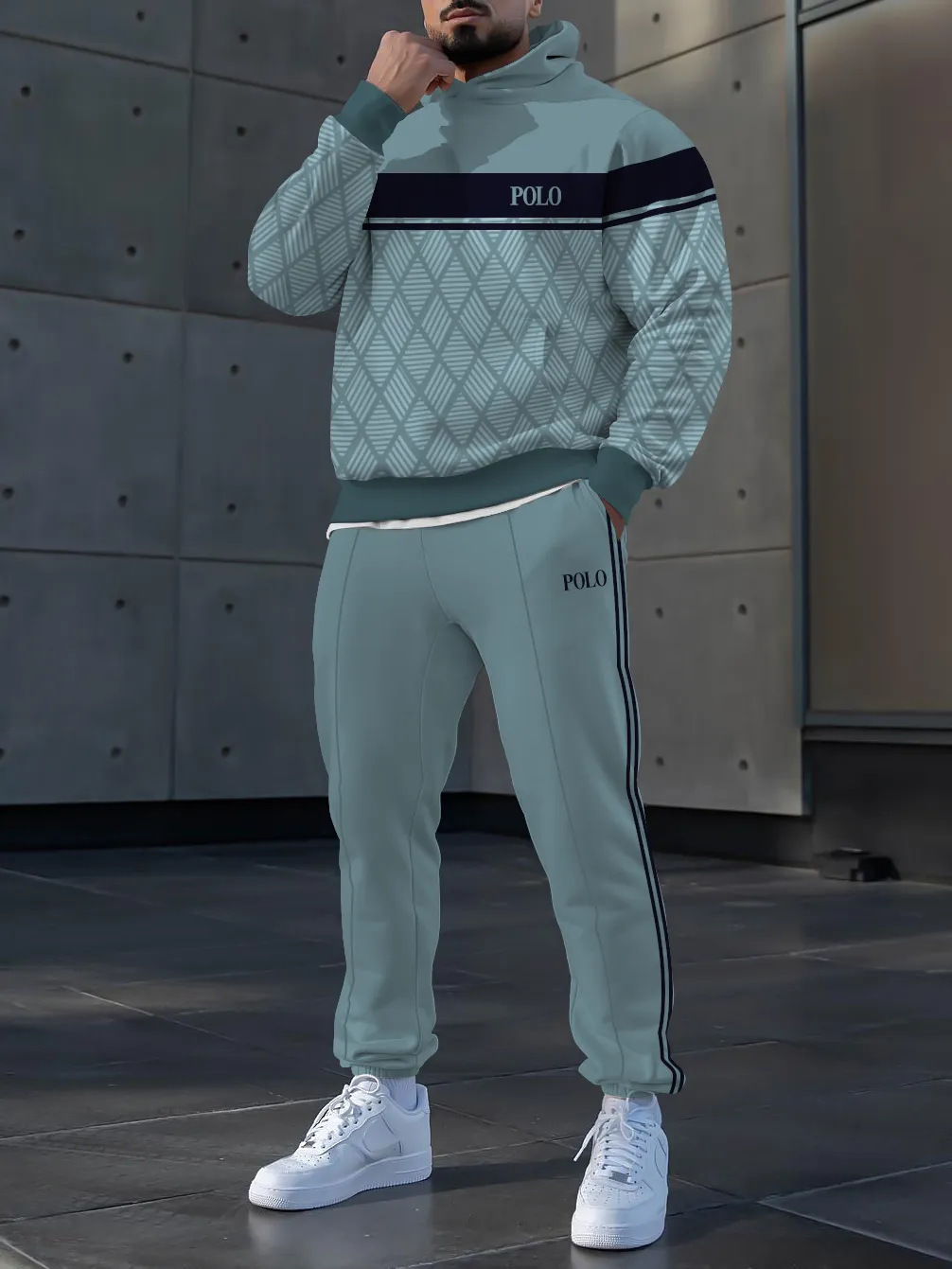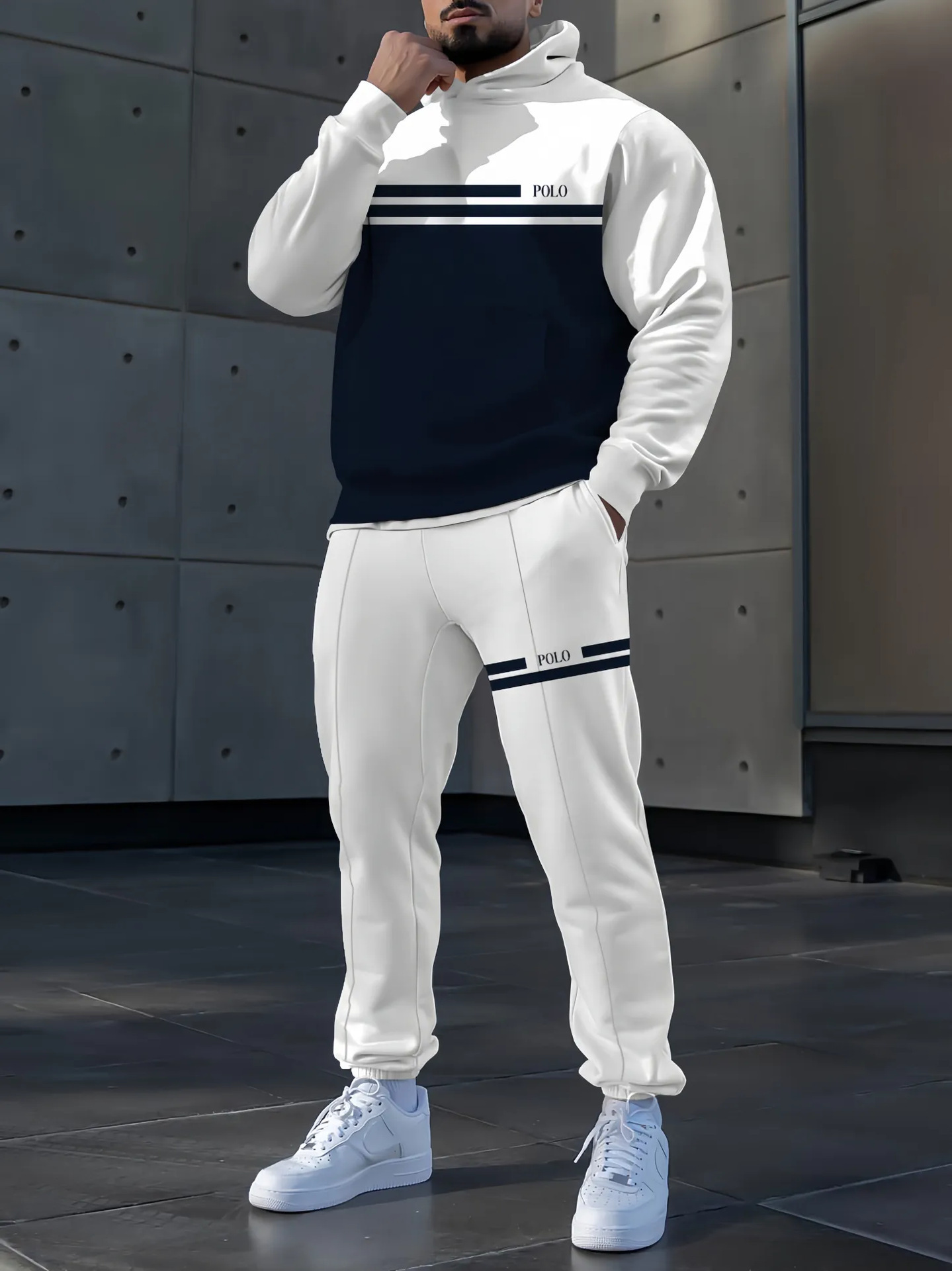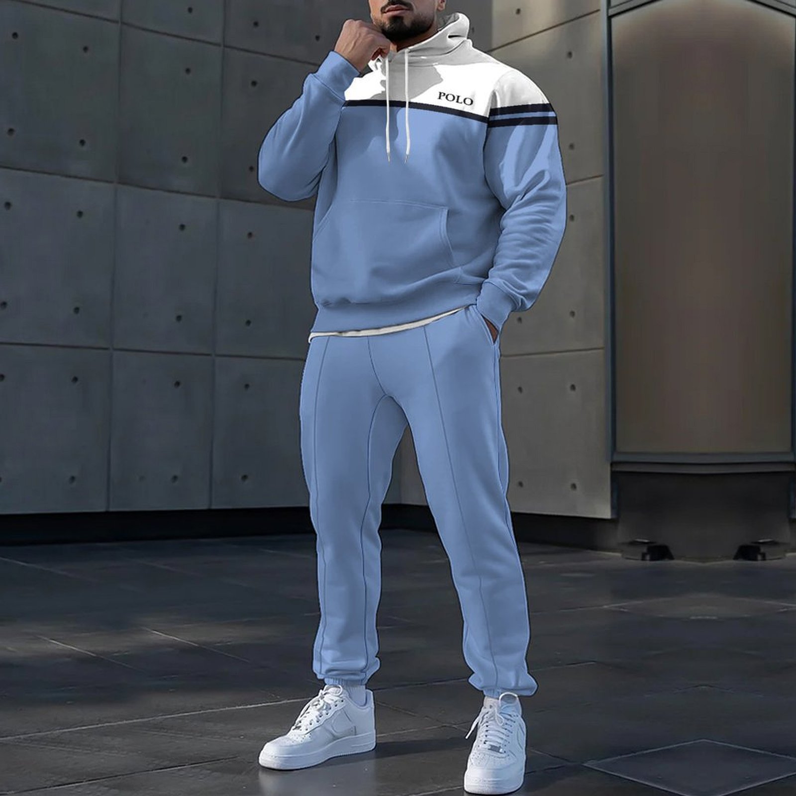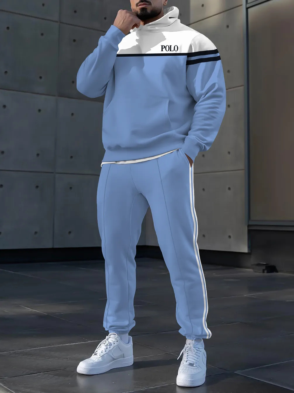 가을 겨울 남성 후드 티셔츠 정장 루즈 캐주얼 스포츠 투피스 세트 국경 간 독립 스테이션 독점 공급스토어 가기