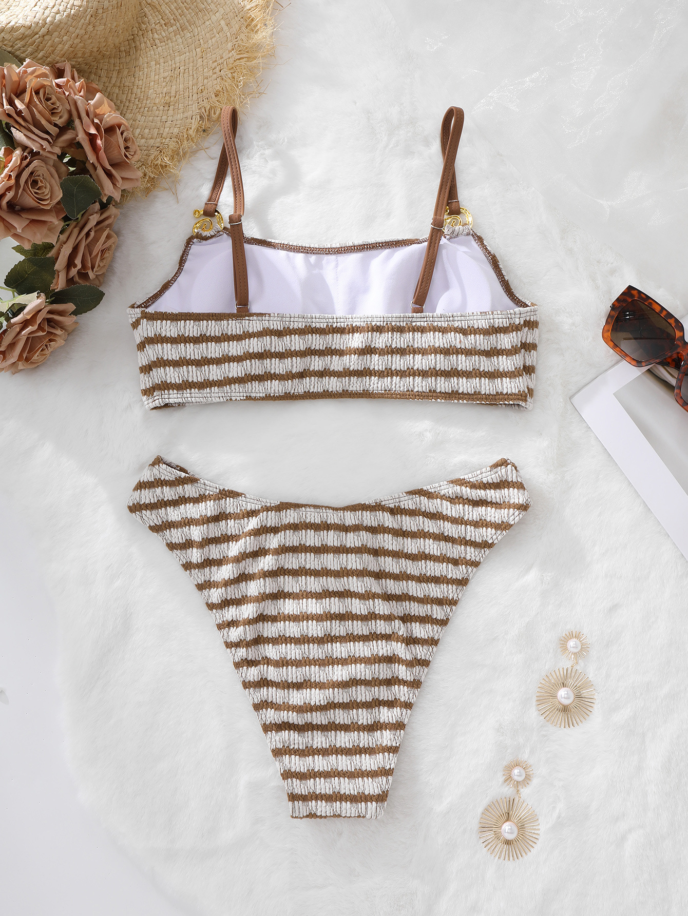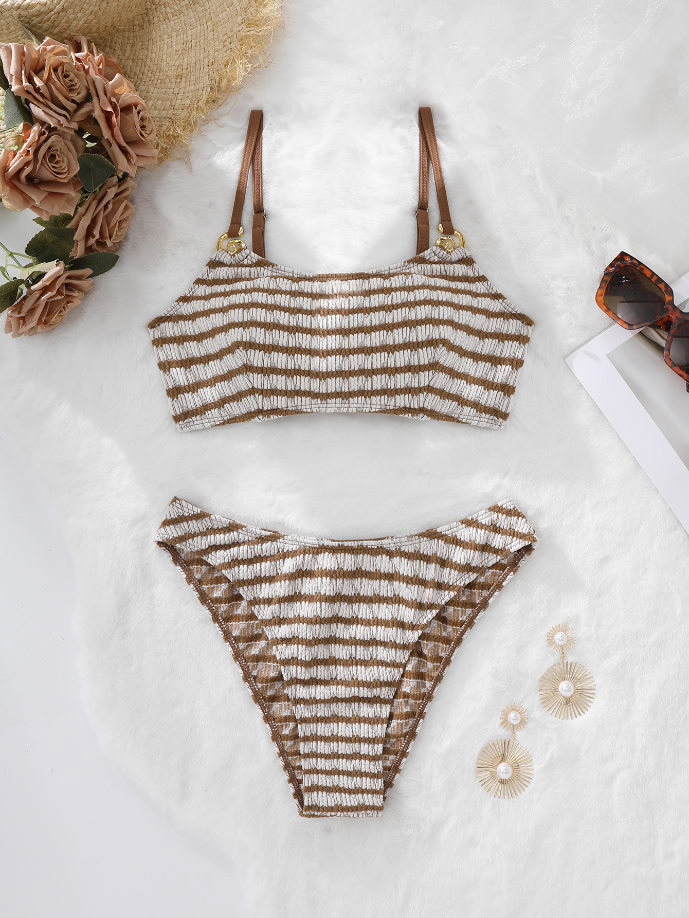 한국 레트로 스트라이프 섹시 슬림핏 긴팔 보수적인 분리형 비키니 수영복 여성 세트 제조업체 하이웨이스트