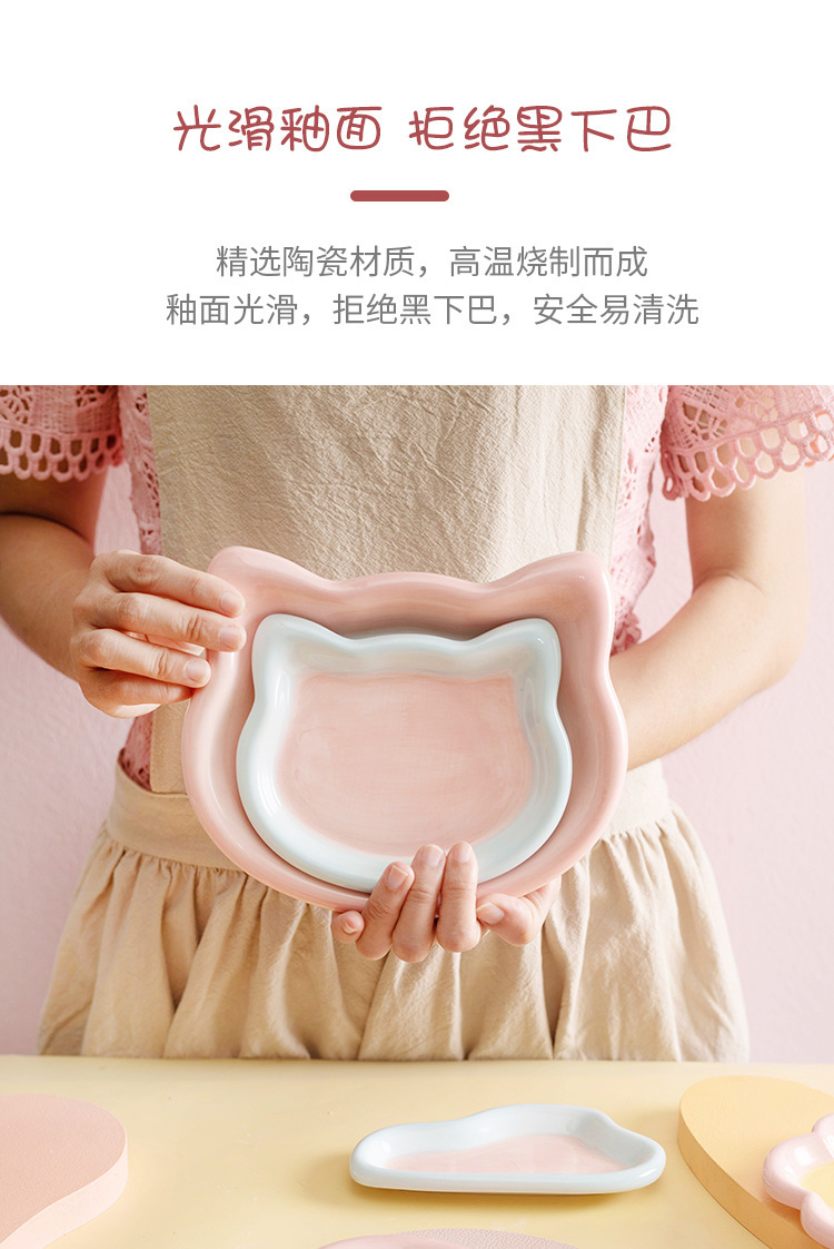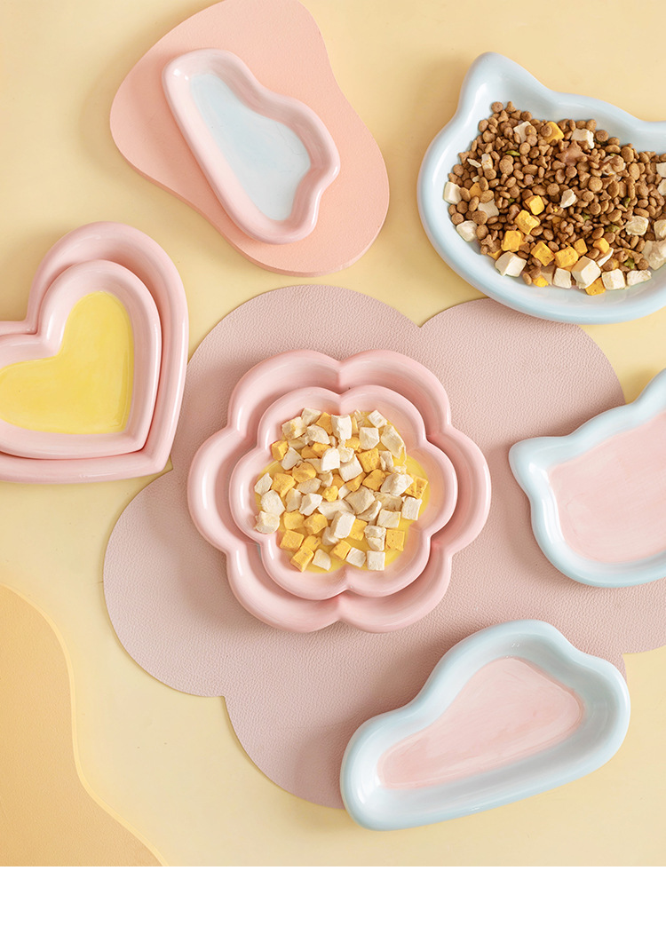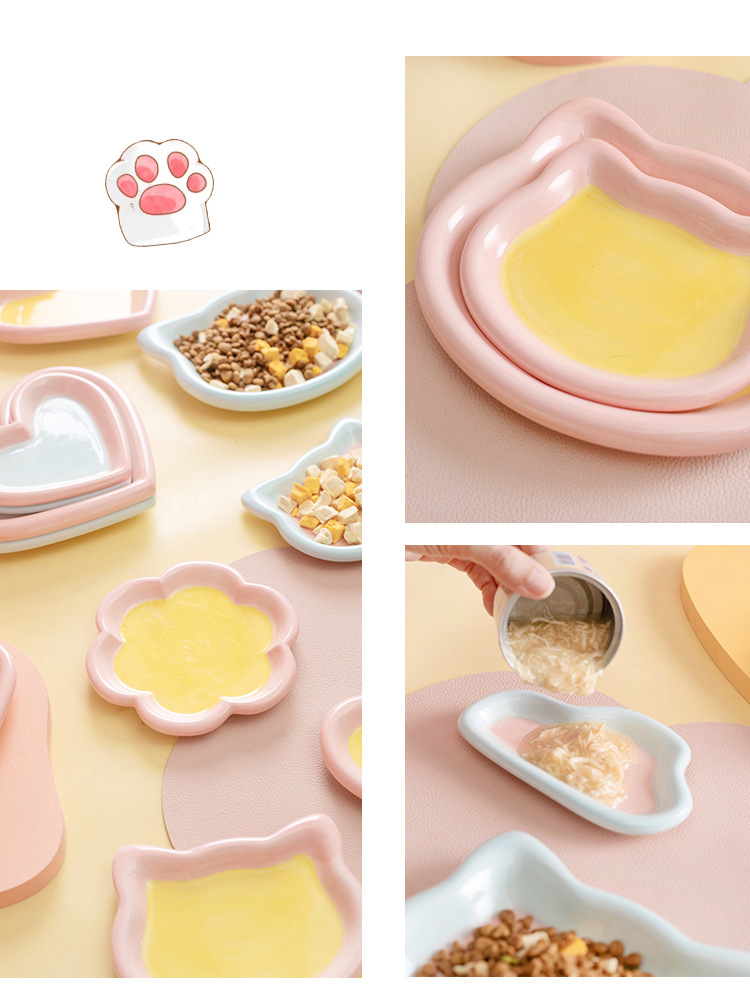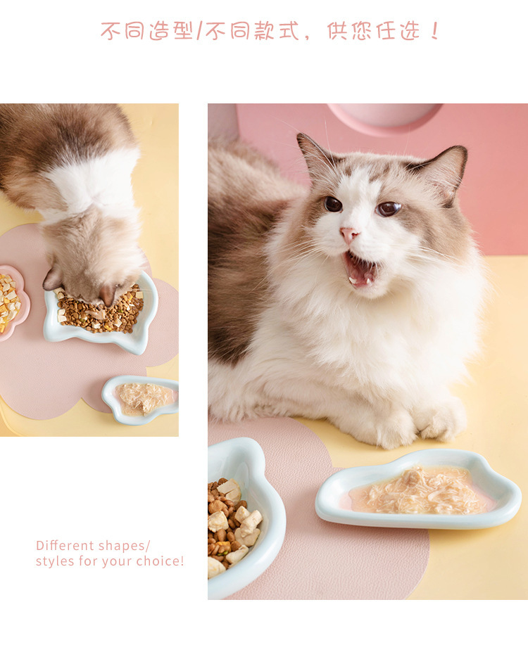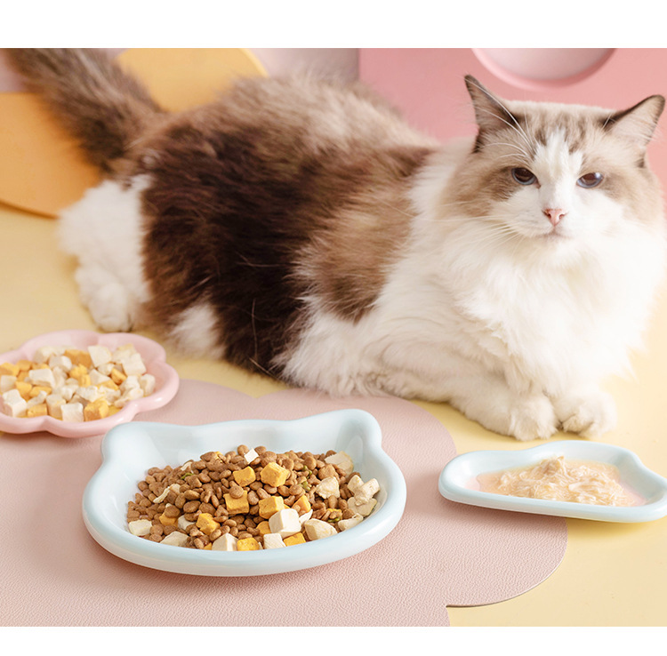 세라믹 고양이 그릇 스타일 손으로 그린 도트 플레이트 고양이 그릇 고양이 사료 간식 동결 건조 통조림 세라믹 디너 플레이트 식품 그릇