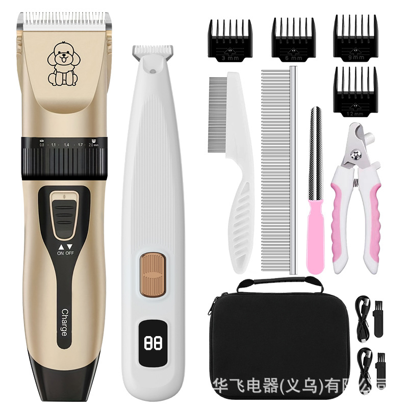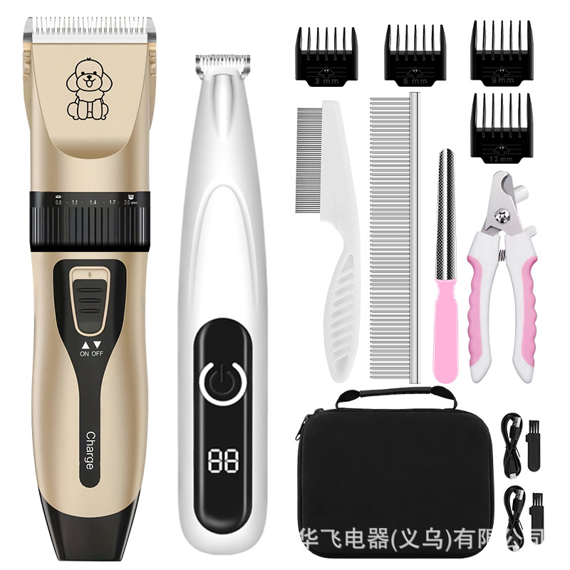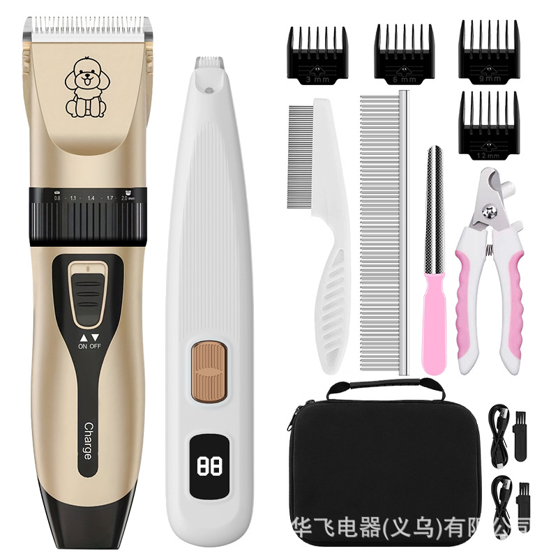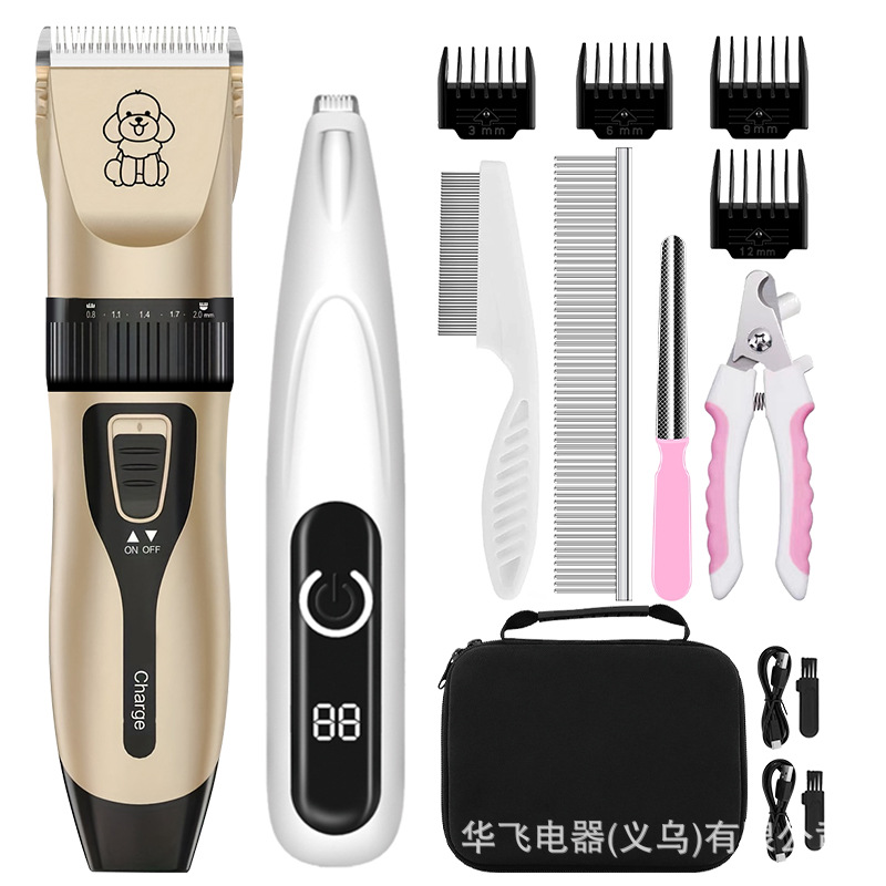 • 애완동물 금발 이발기 + 1호 와이드 칼 애완동물 페디큐어 + 강철 빗 + 손톱 커버 + 바늘 빗 + 보관 가방