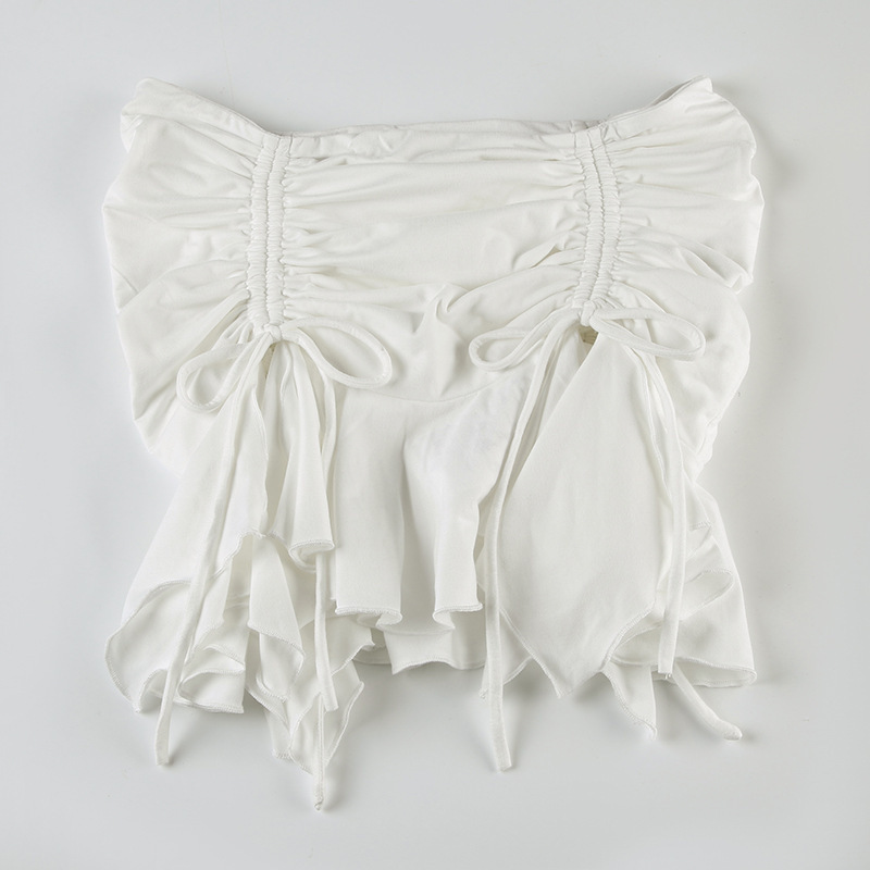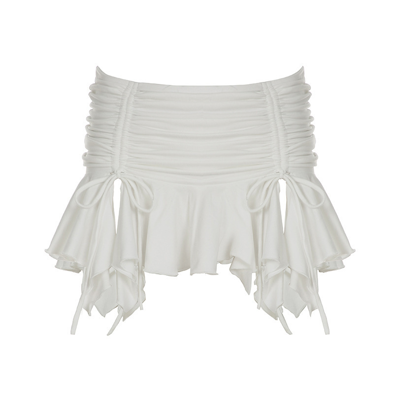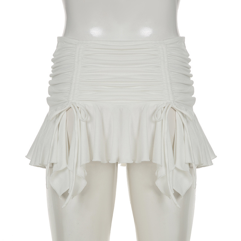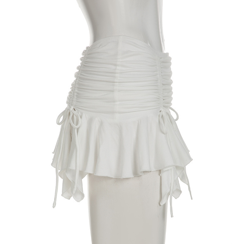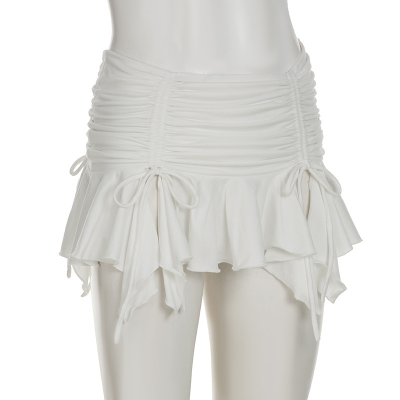 2025 여름 휴가 스타일 섹시한 핫 소녀 패션 솔리드 컬러 셔링 슬릿 불규칙한 미니 소녀 스타일 스커트스토어 가기
