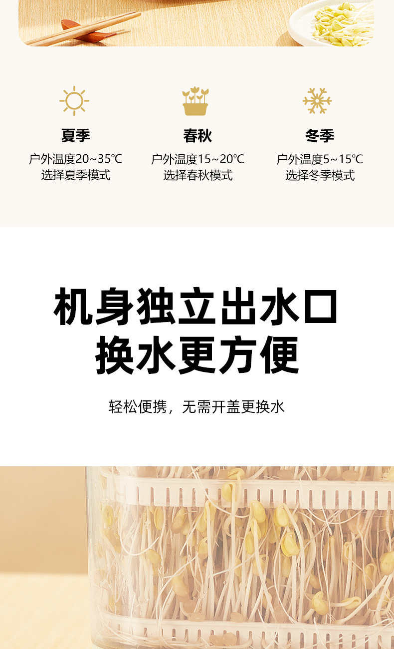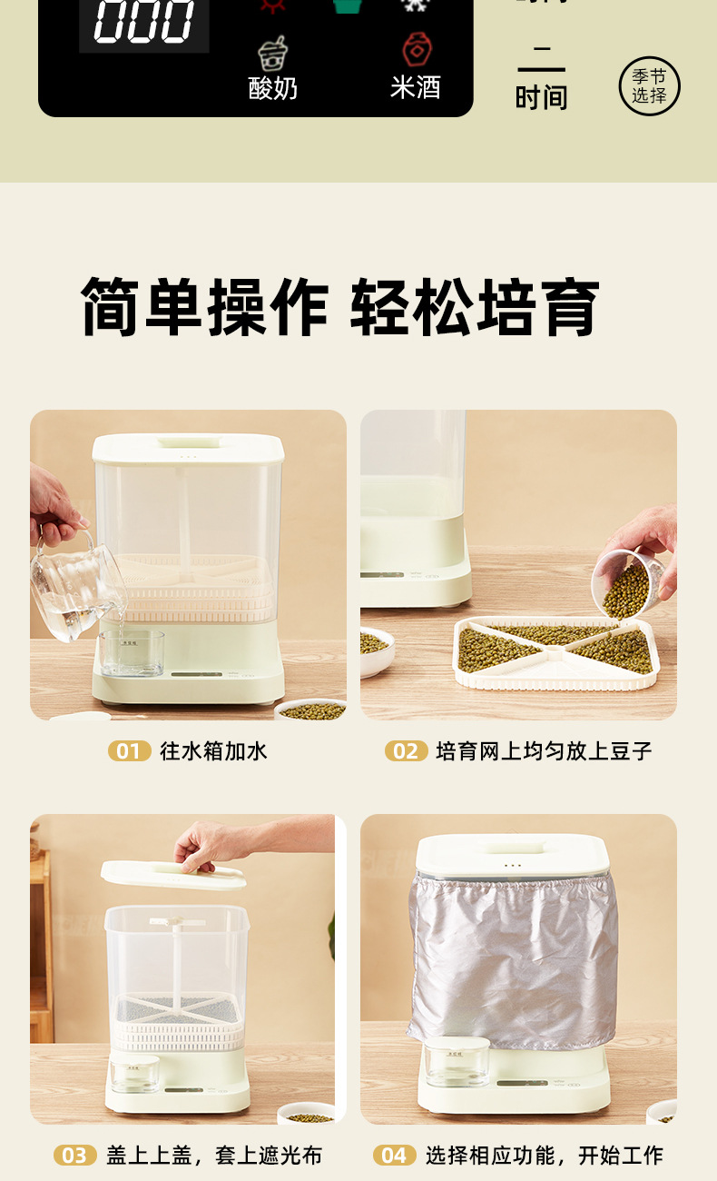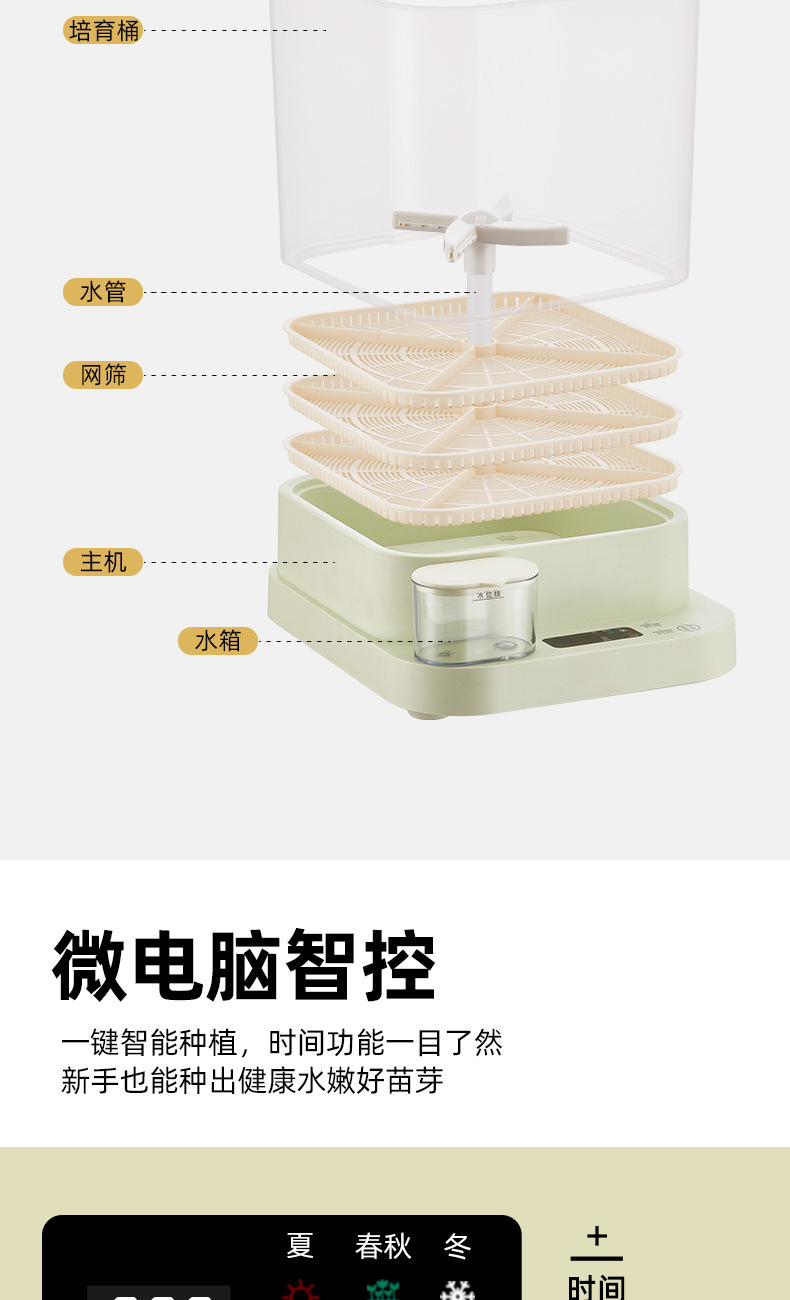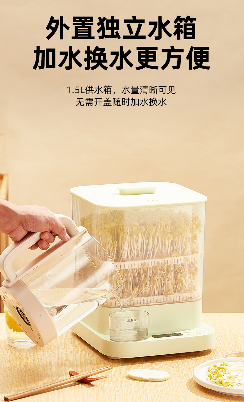 콩나물 기계, 가정용 완전 자동 대용량 콩나물 양배추 통, 수제 소형 생 콩나물 항아리, 유럽 및 미국 표준스토어 가기