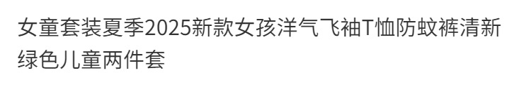 소녀 세트 여름 2025 새로운 스타일 여자 서양식 비행 소매 티셔츠 안티-모기 바지 신선한 녹색 어린이 투피스 세트스토어 가기