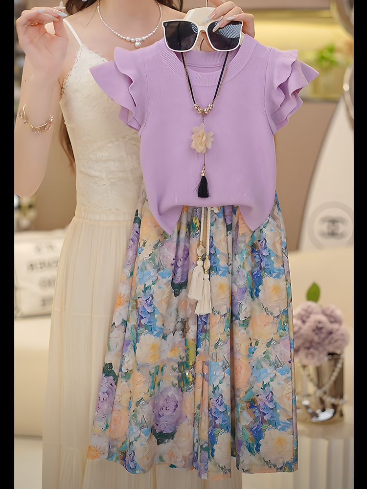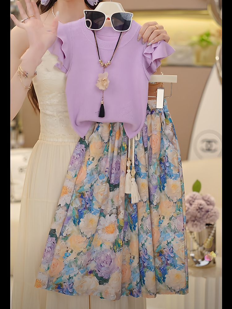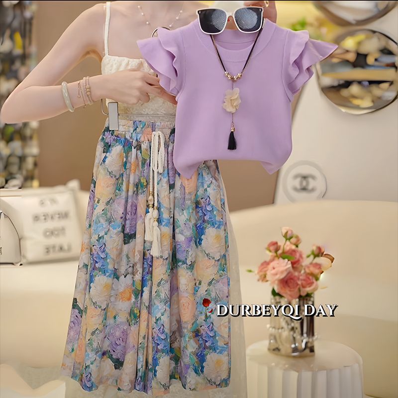 • 보라색 꽃무늬 와이드 팬츠