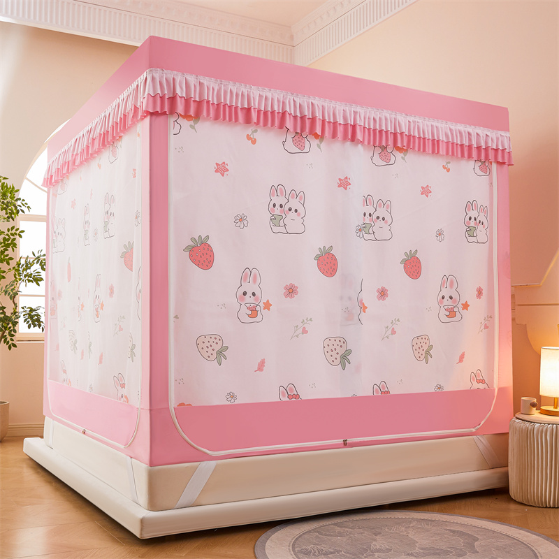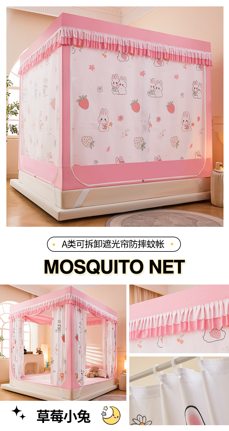 • 딸기토끼 풀베이스 탈착식 침대 시트 [낙하 방지 5배 향상 + 두꺼워진 접합 방지 브래킷 + 5면 강력한 차광]