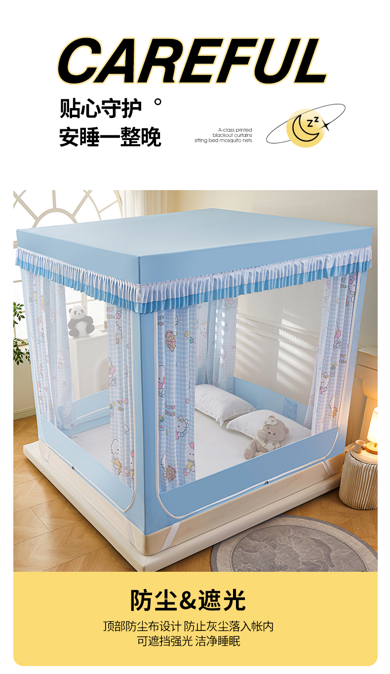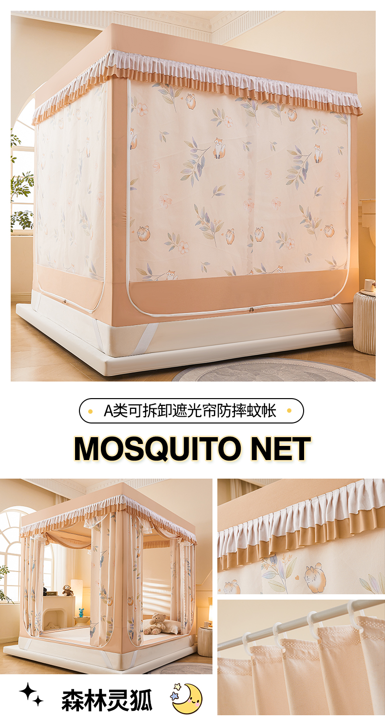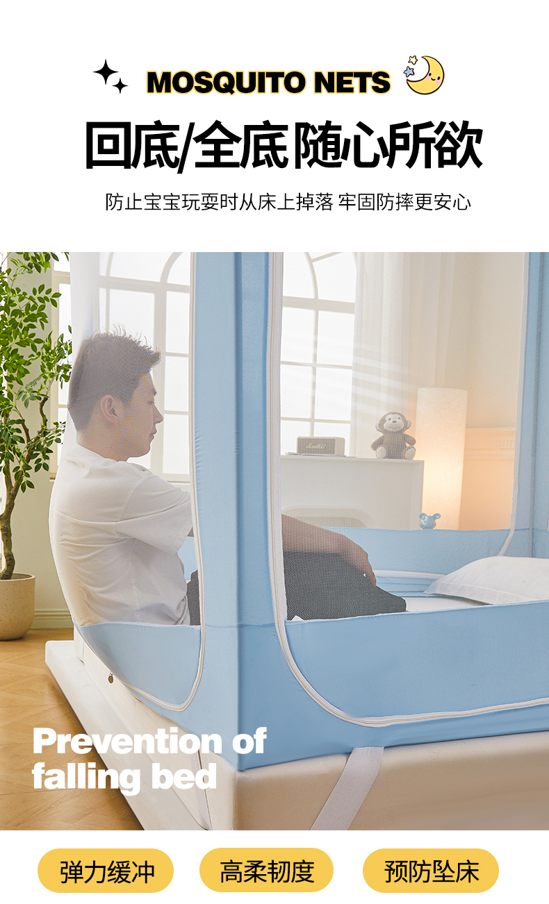클래스 A 어린이 낙하 방지 모기장 울타리 아기 홈 침대 커튼 통합 2025 새로운 지퍼 설치가 필요없는 몽골리안 돔스토어 가기