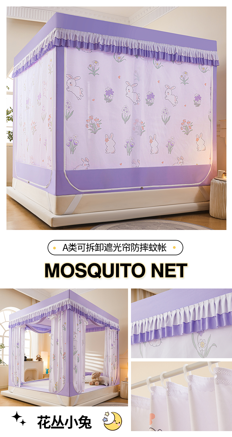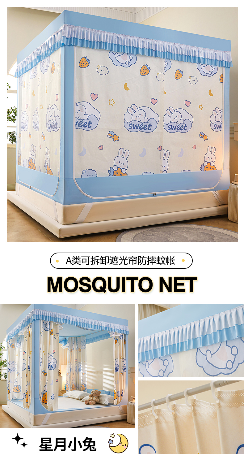 • Xingyue Bunny 풀베이스 탈착식 침대 시트 [낙하 방지 기능 5배 향상 + 접합 없이 두꺼워진 브래킷 + 5면의 강력한 차광]