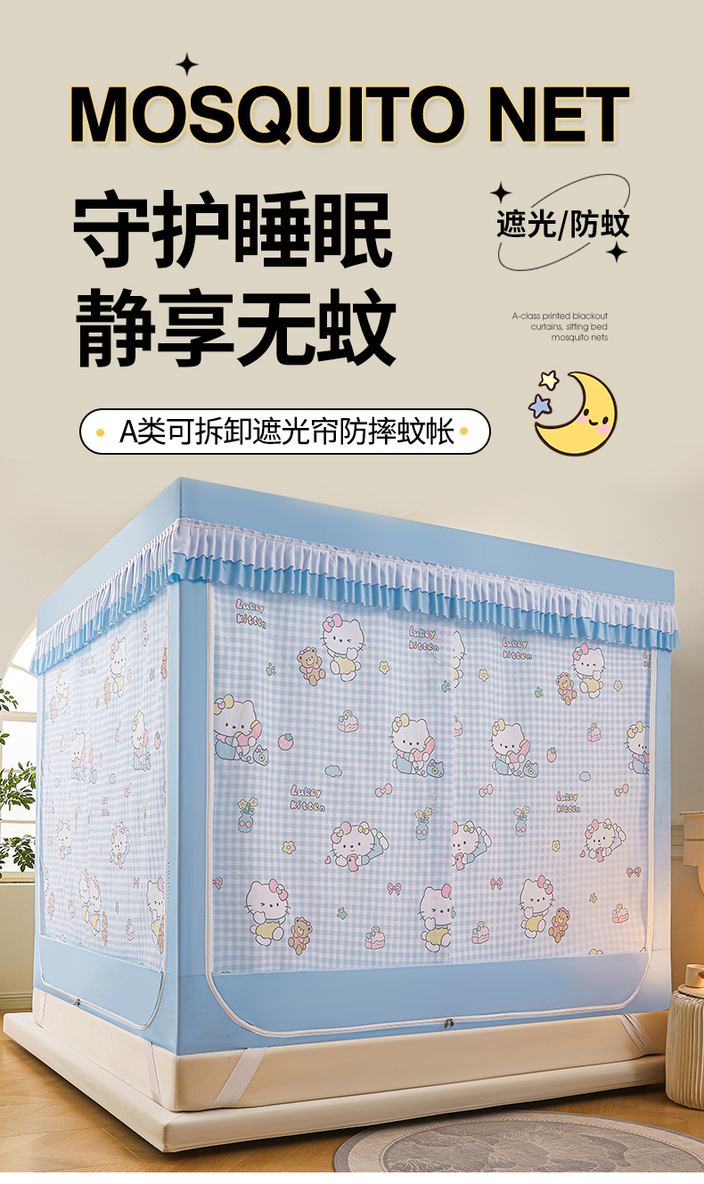 • 해피큐트캣 풀베이스 탈착식 침대 시트 [낙하방지 5배 향상 + 두꺼워진 스플라이싱 프리 브라켓 + 5면 강력 차광]