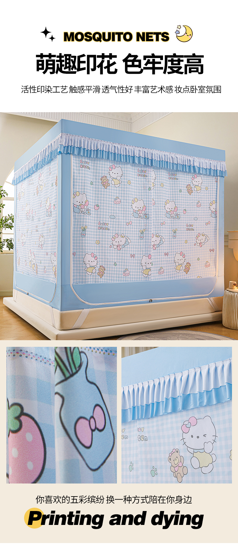 • 큐트 파라다이스 풀베이스 탈착식 침대 시트 [낙하 방지 5배 향상 + 두꺼워진 스플라이싱 프리 브라켓 + 5면 강력 쉐이딩]