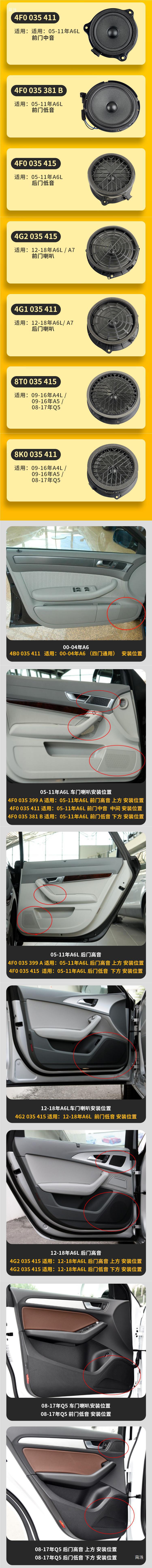 • 08-16 A4L/A5 프론트 도어 베이스 매칭-싱글 스피커-특수 자동차