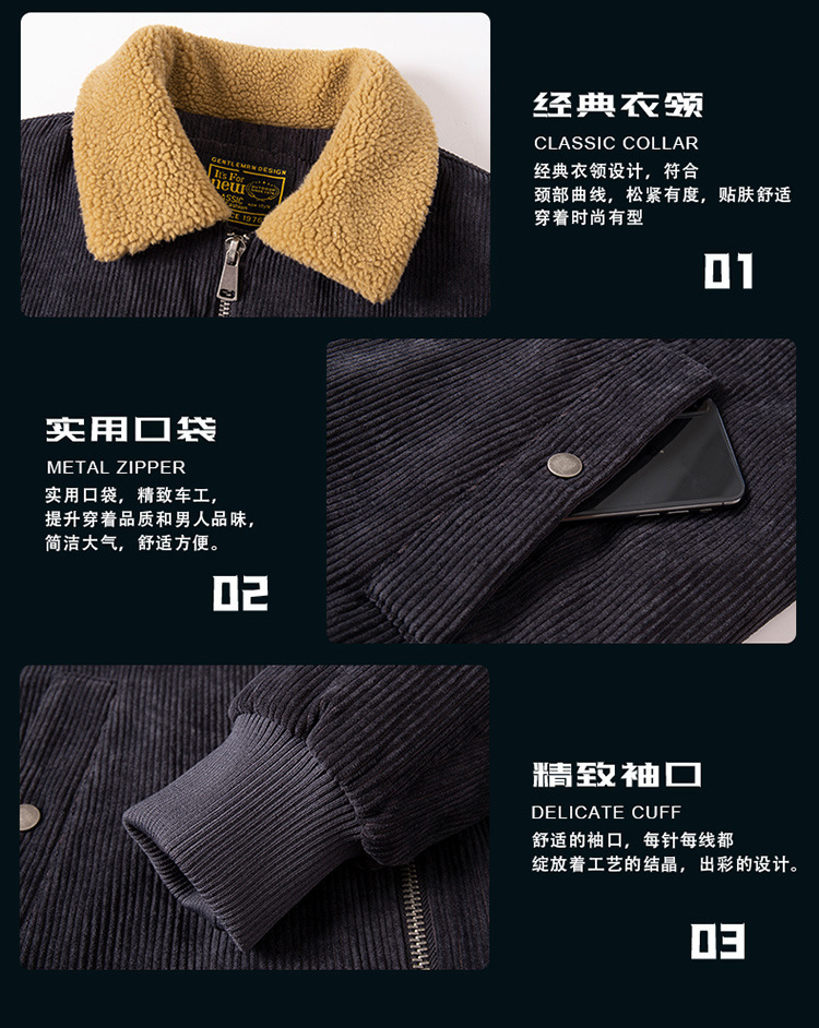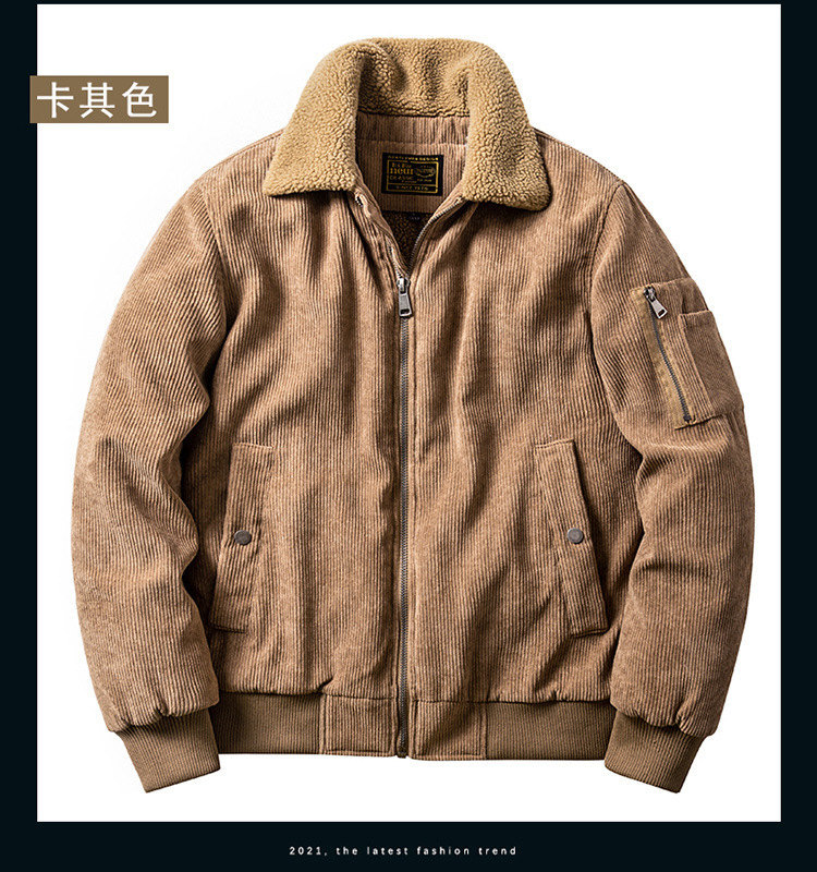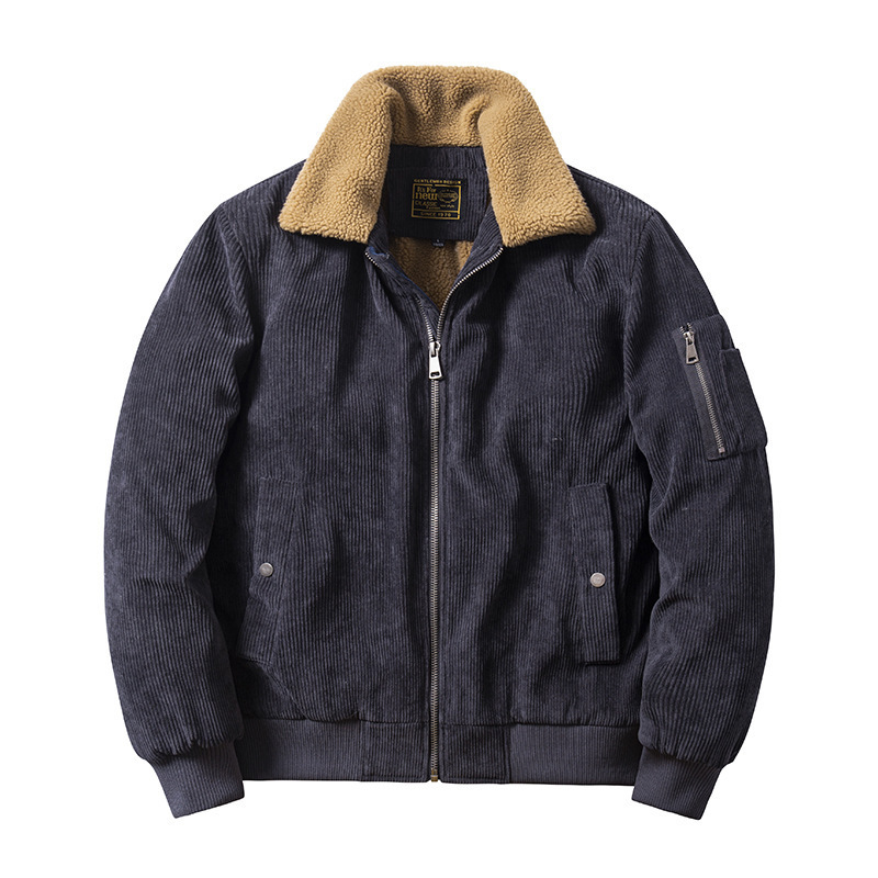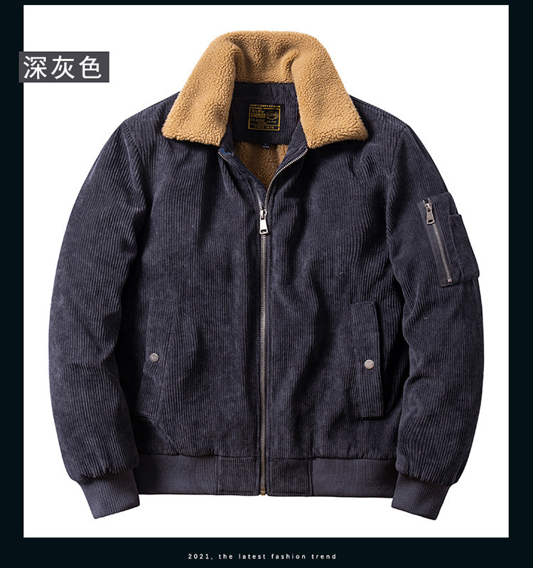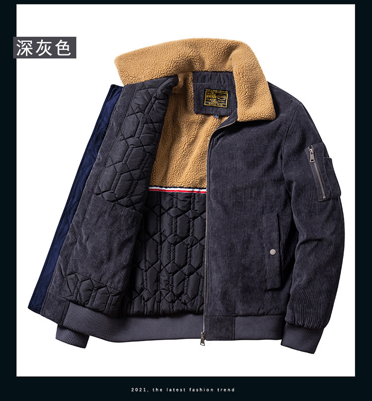 코듀로이 벨벳 두꺼운 재킷 남성 겨울 라펠 중년 및 젊은 일본식 루즈한 작업복 벨벳 재킷