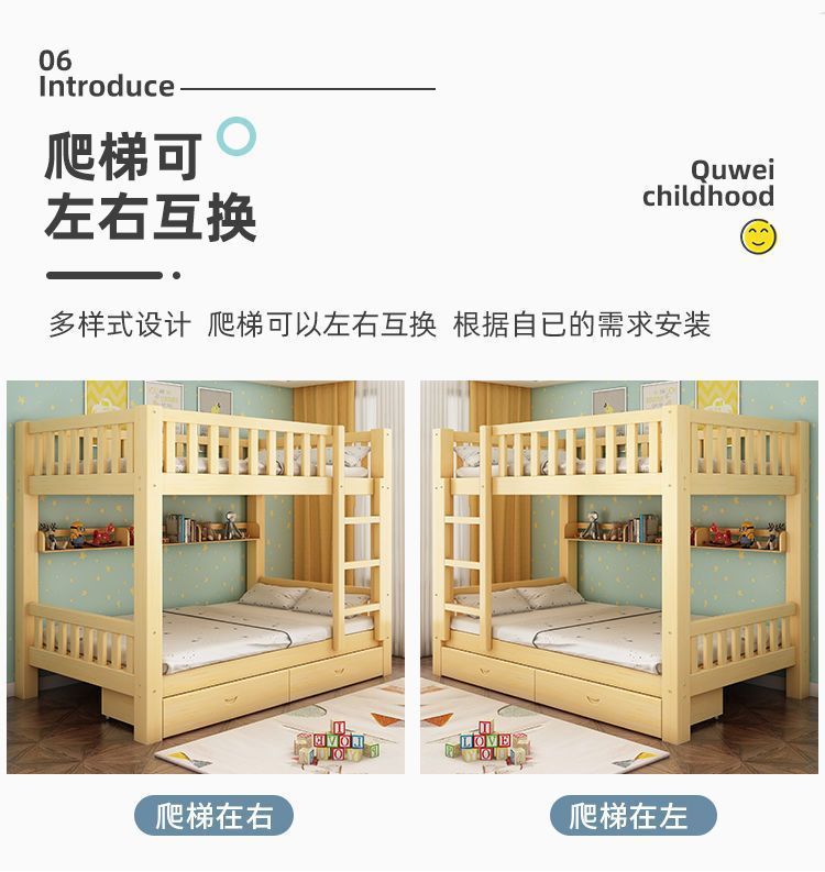 국가 표준 전체 단단한 나무 이층 침대 어린이 및 성인 나무 침대 작은 아파트 2층 이층 침대 높낮이 이층 침대스토어 가기
