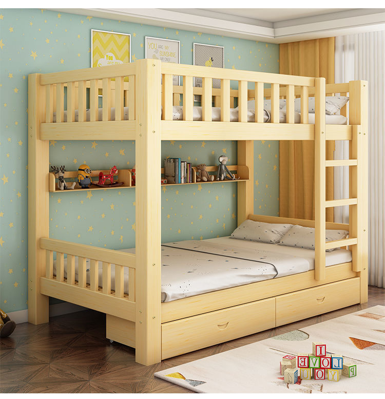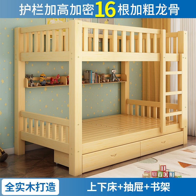 국가 표준 전체 단단한 나무 이층 침대 어린이 및 성인 나무 침대 작은 아파트 2층 이층 침대 높낮이 이층 침대