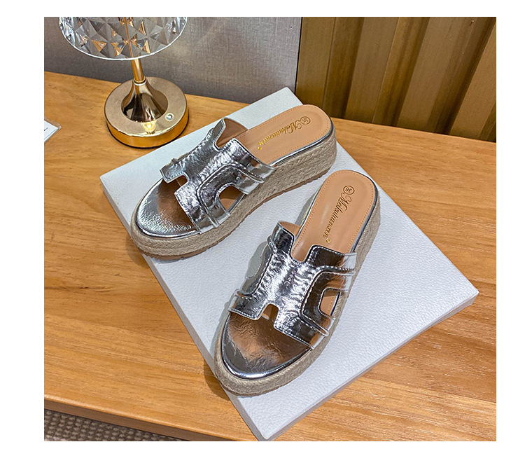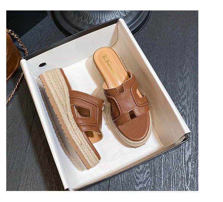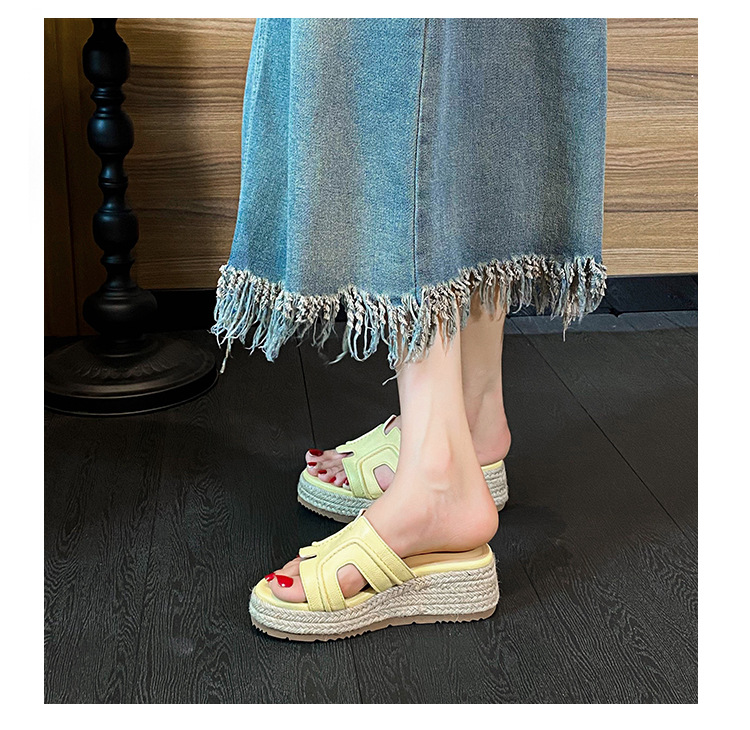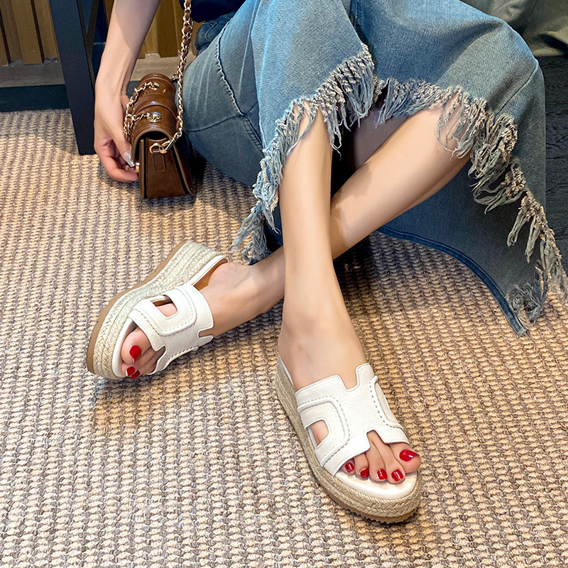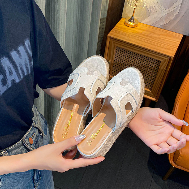 새로운 복고풍 대마 로프로 짠 H형 슬리퍼 플랫폼 두꺼운 밑창 5cm~여름에 캐주얼하고 다재다능한 데일리웨어