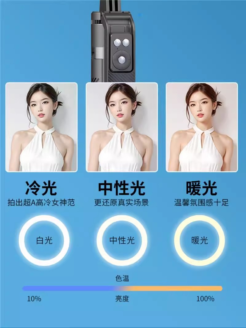 • A14 이중 조명 검정색 [알루미늄 합금 폴 1.8m개 + 충전 Douyin 리모컨 + 대형 원형 조명 2개]