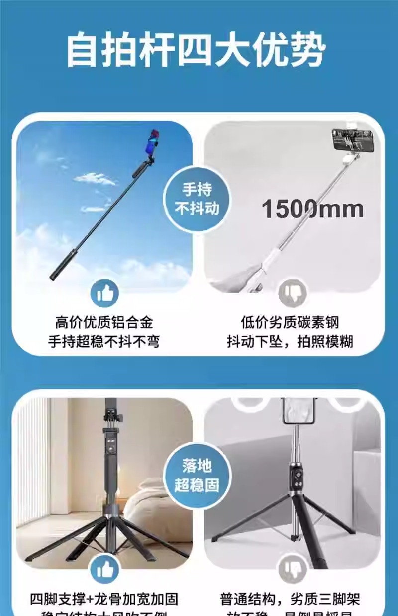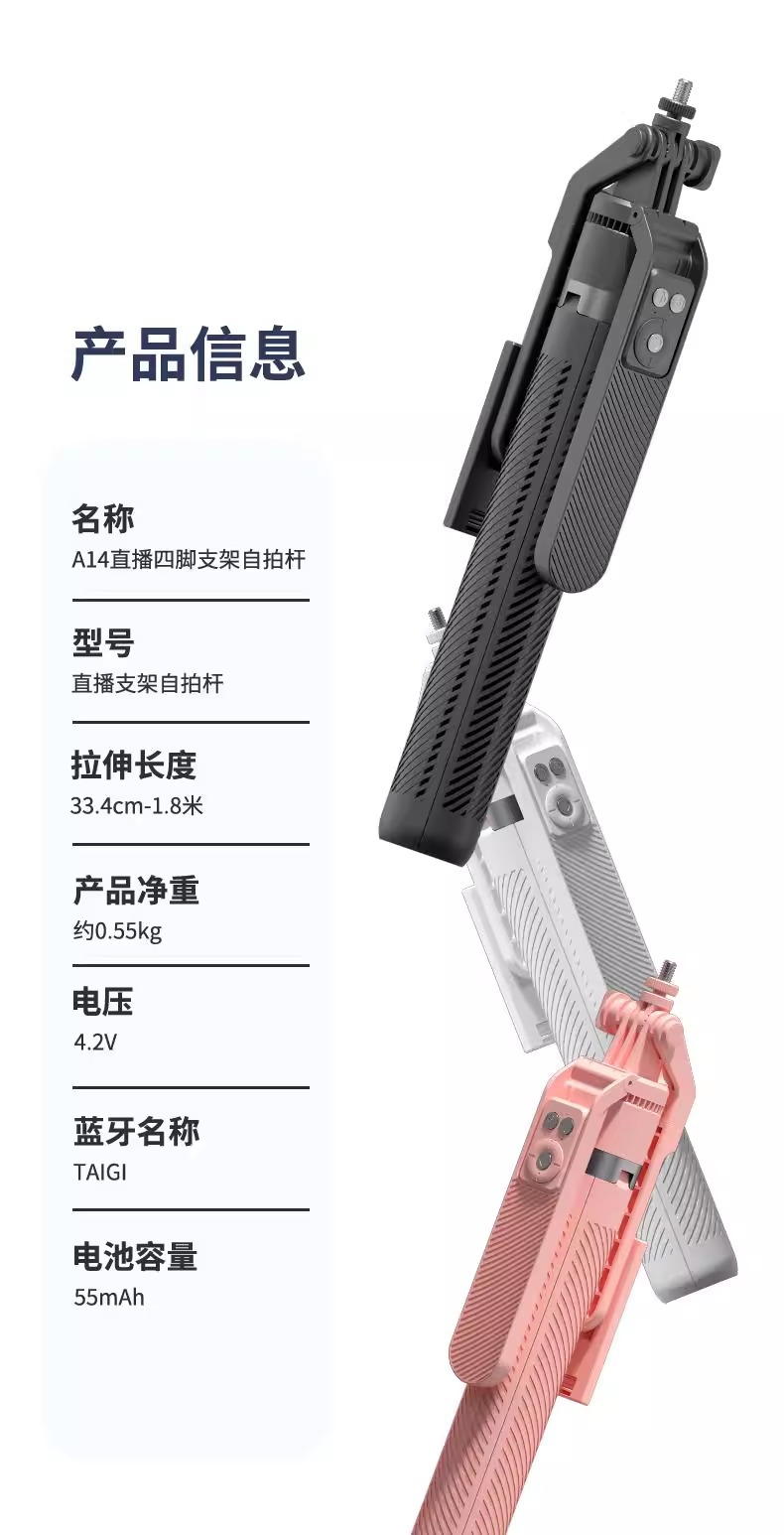 1.8m 휴대폰 블루투스 셀카봉 알루미늄 합금 A14 원클릭 팝업 4각 지지대 라이브 방송용 4각 스탠드