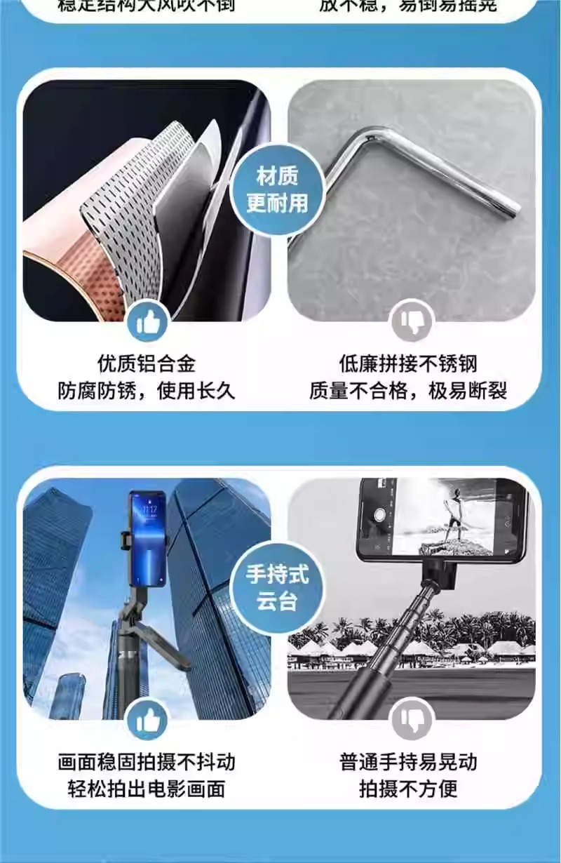 1.8m 휴대폰 블루투스 셀카봉 알루미늄 합금 A14 원클릭 팝업 4각 지지대 라이브 방송용 4각 스탠드스토어 가기