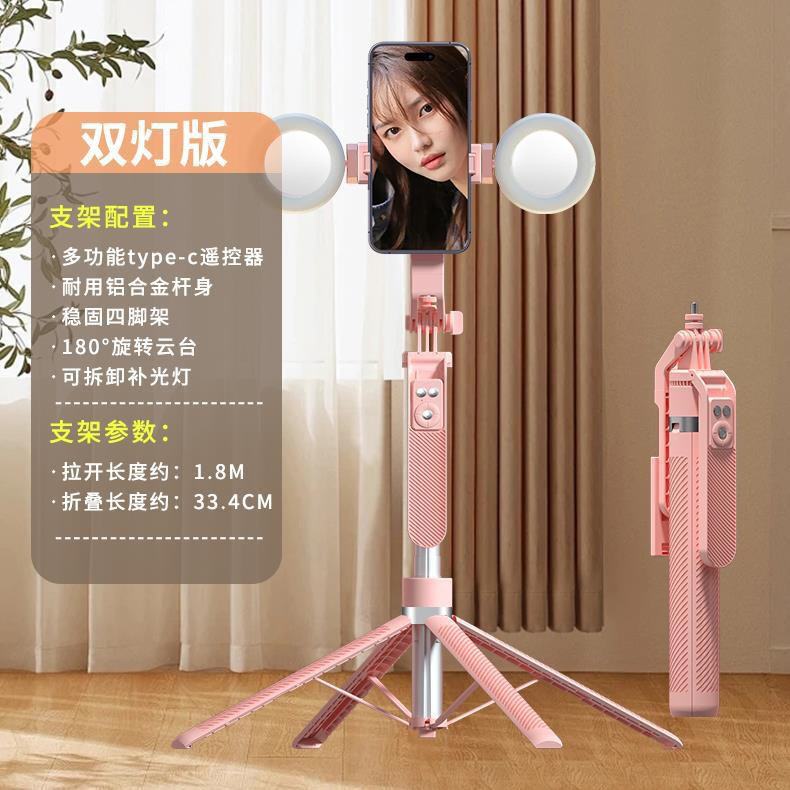 • A14 더블 라이트 핑크 [알루미늄 합금 폴 1.8m개 + 충전용 Douyin 리모컨 + 대형 원형 조명 2개]