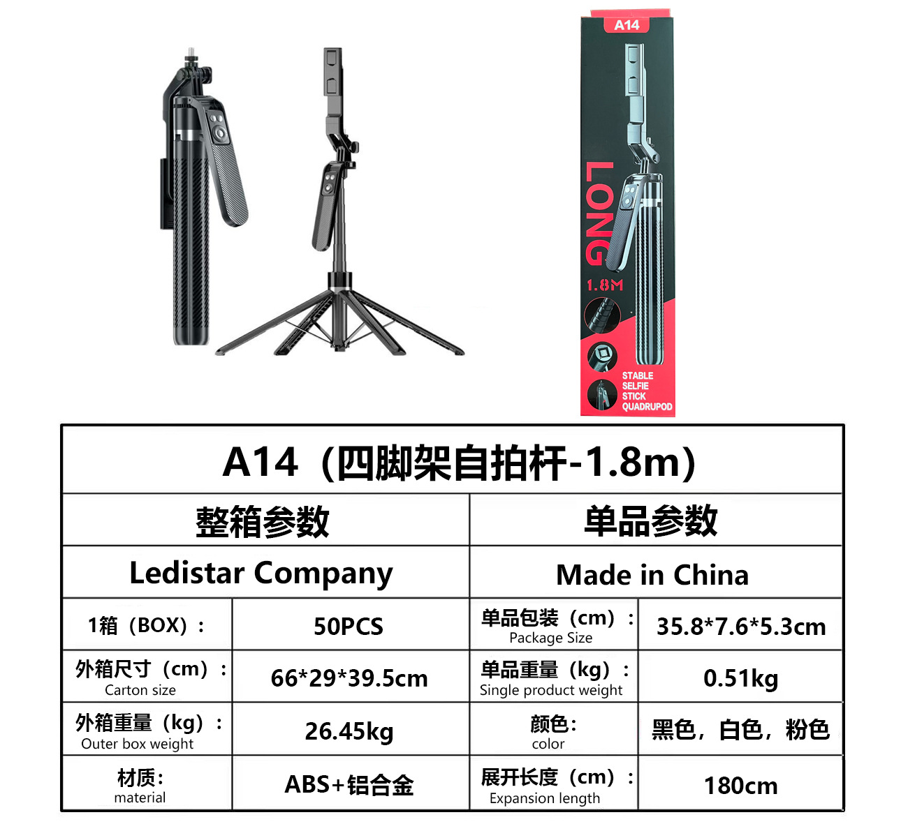 • A14 핑크 [알루미늄 합금 폴 1.8m개 + 충전 Douyin 리모컨]