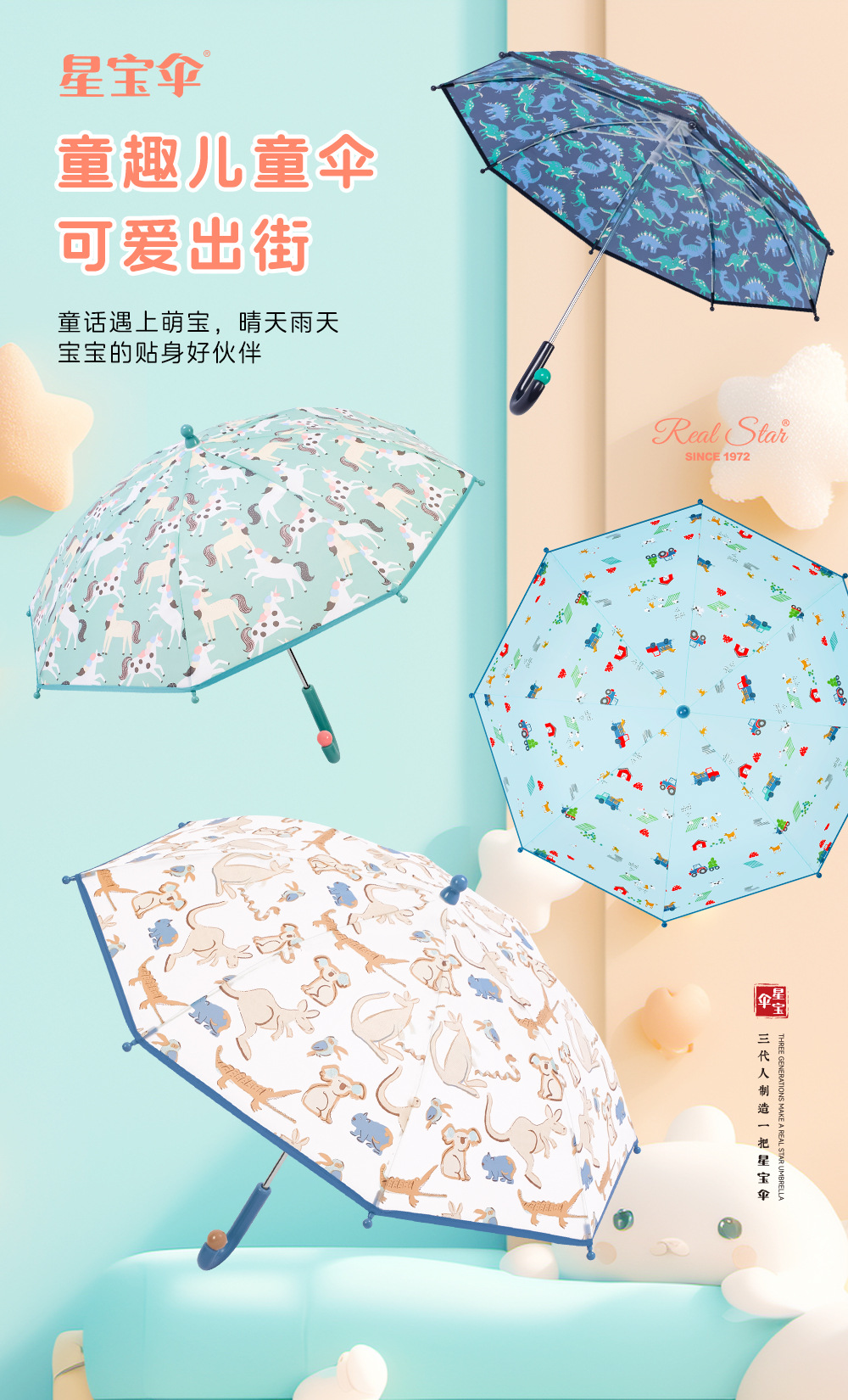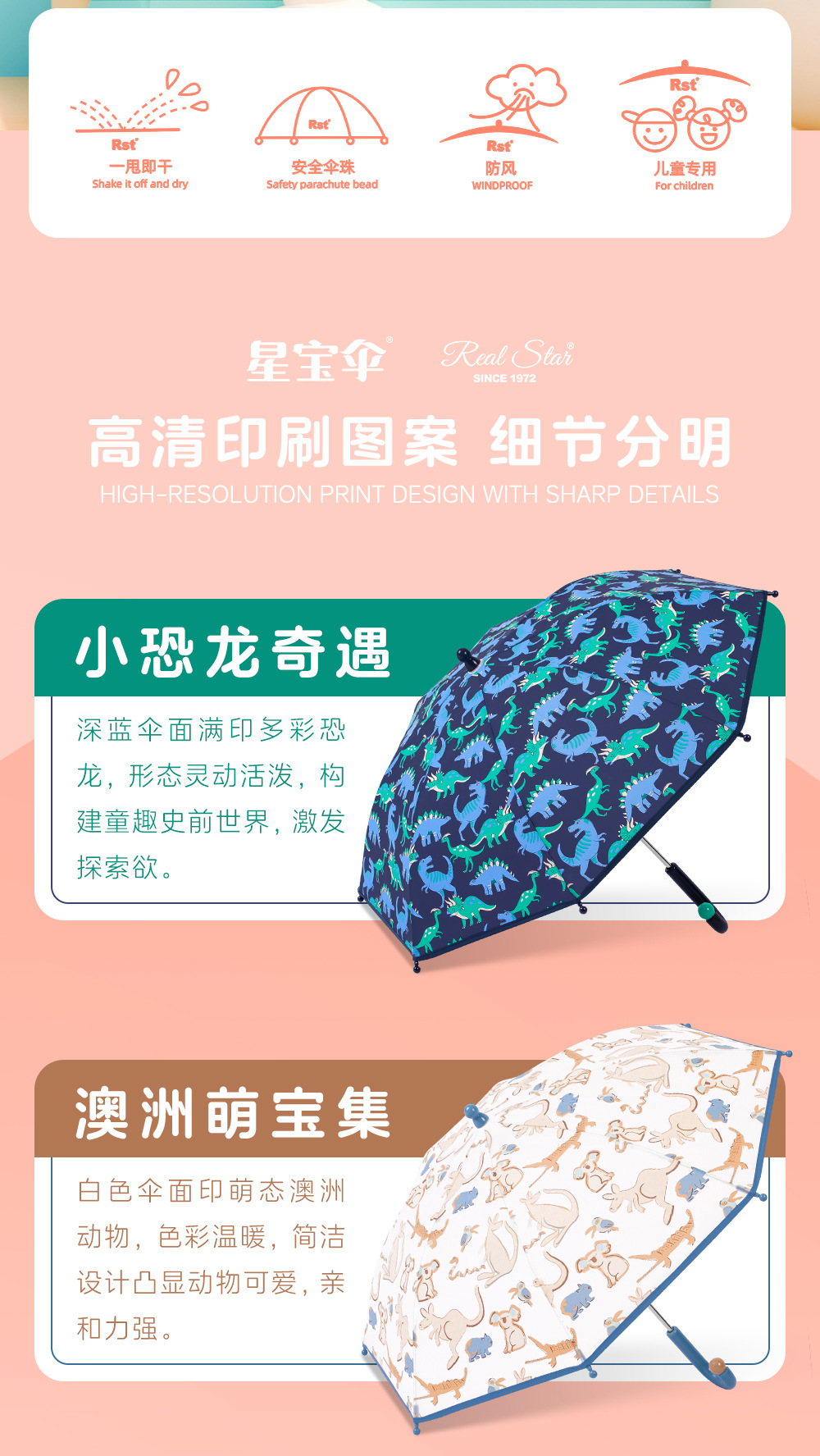 RST 제조업체 직접 공급 도매 어린이 안티 핀치 손 오픈 우산 소년과 소녀 POE 우산 만화 조랑말 공룡 동물스토어 가기