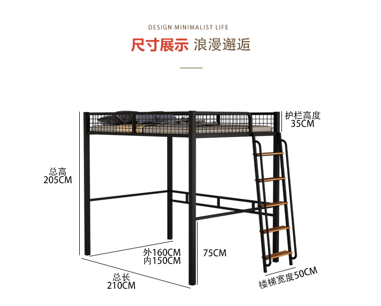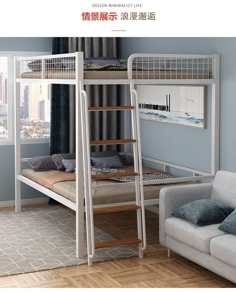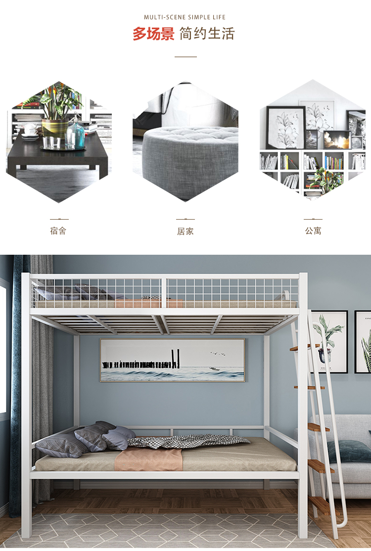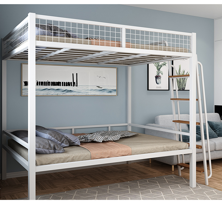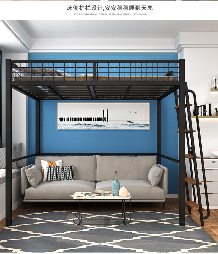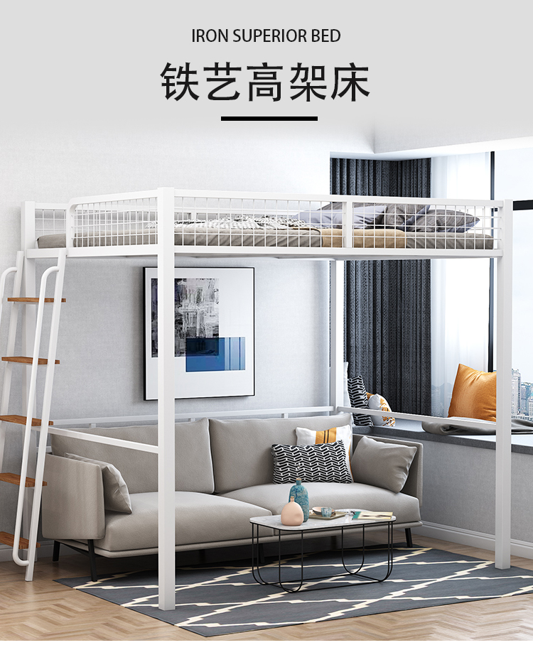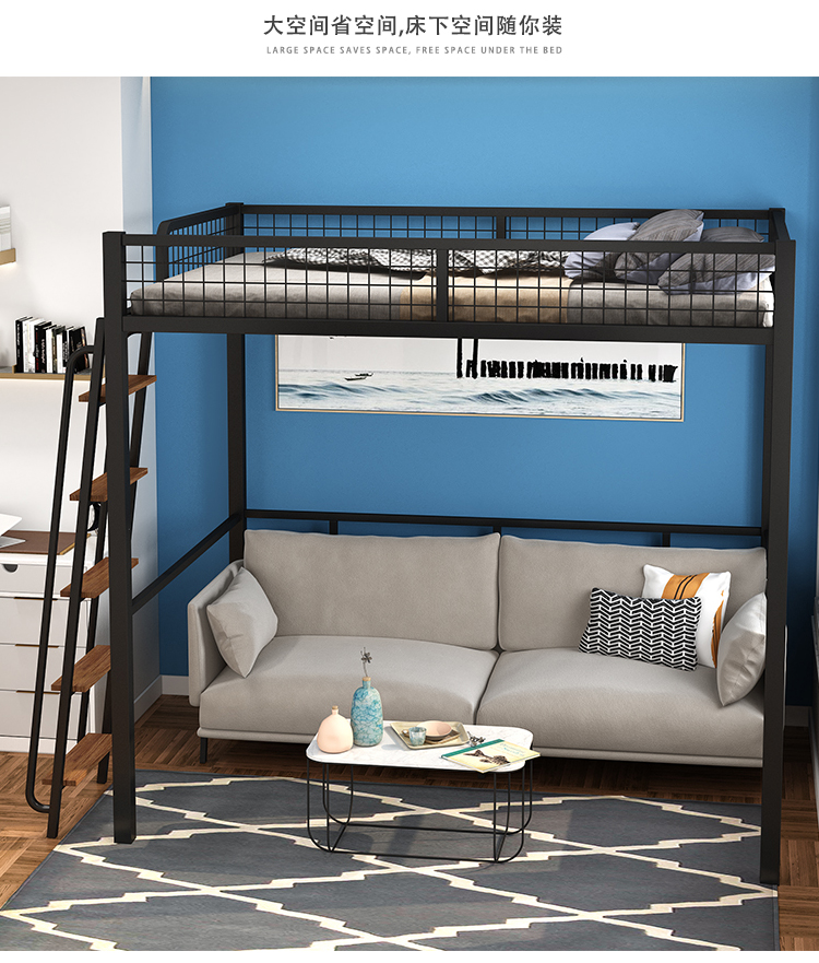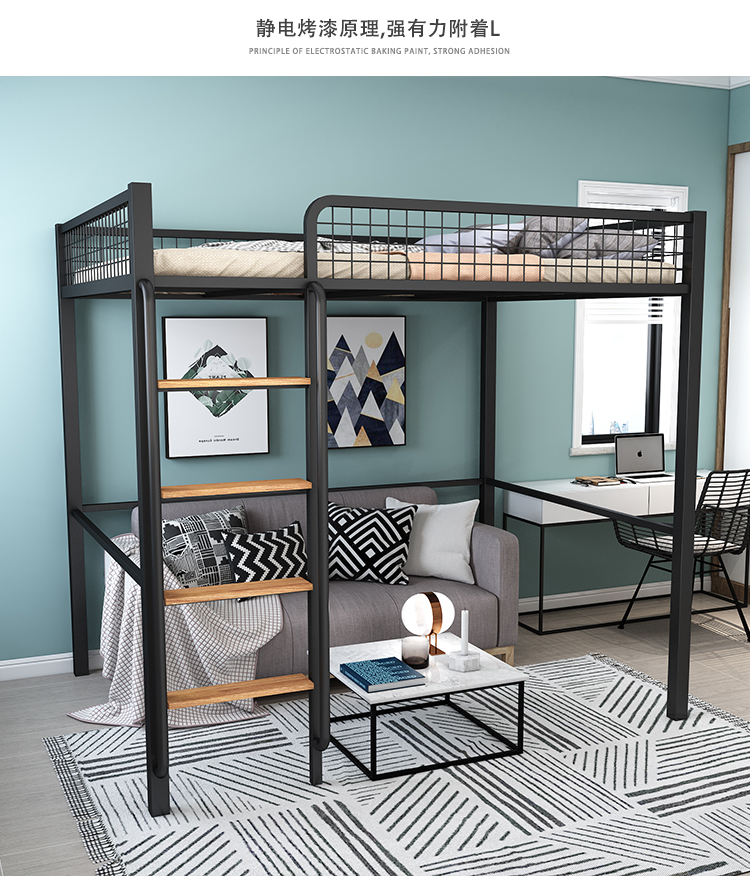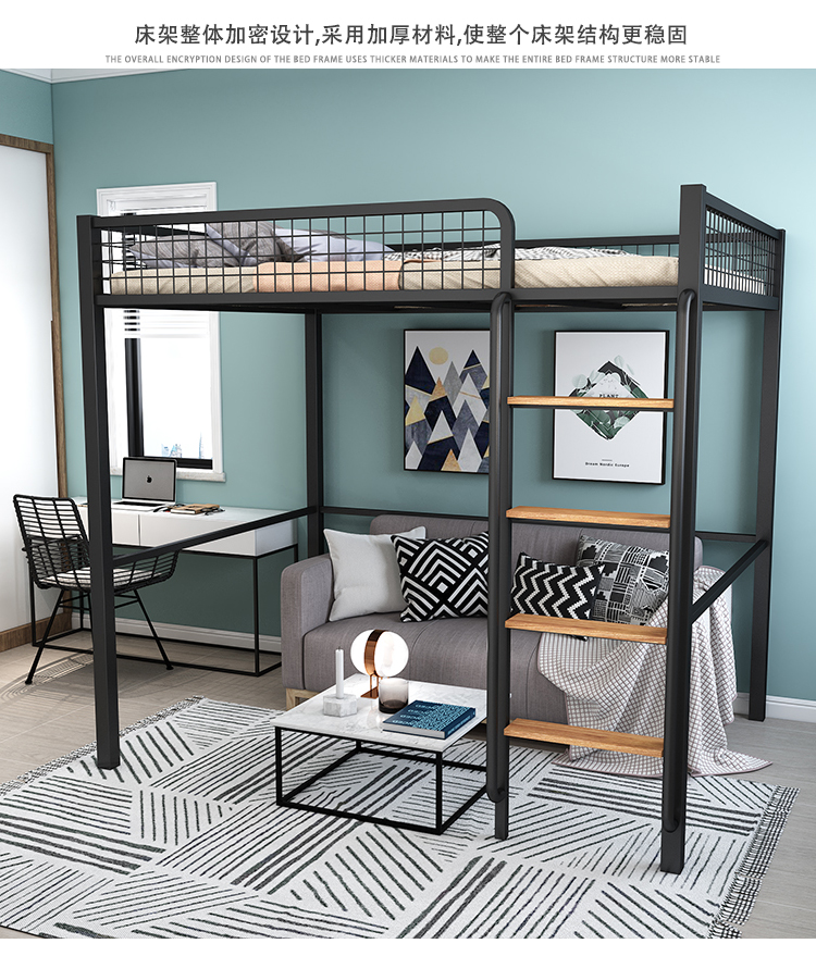 하이베드, 상단에 침대, 하단에 테이블, 이층침대, 철제 프레임 침대, 심플한 성인용 철제 아트, 소형 아파트, 상단 및 하단스토어 가기