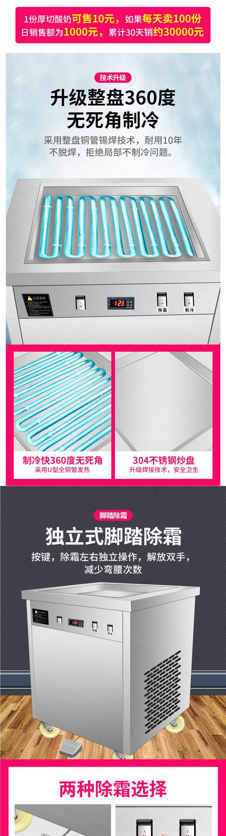 두껍게 썬 요거트 프라이팬, 상업용 플러그인 모델, 플러그인 전자동 아이스 프라이팬, 아이스크림 롤 판매대