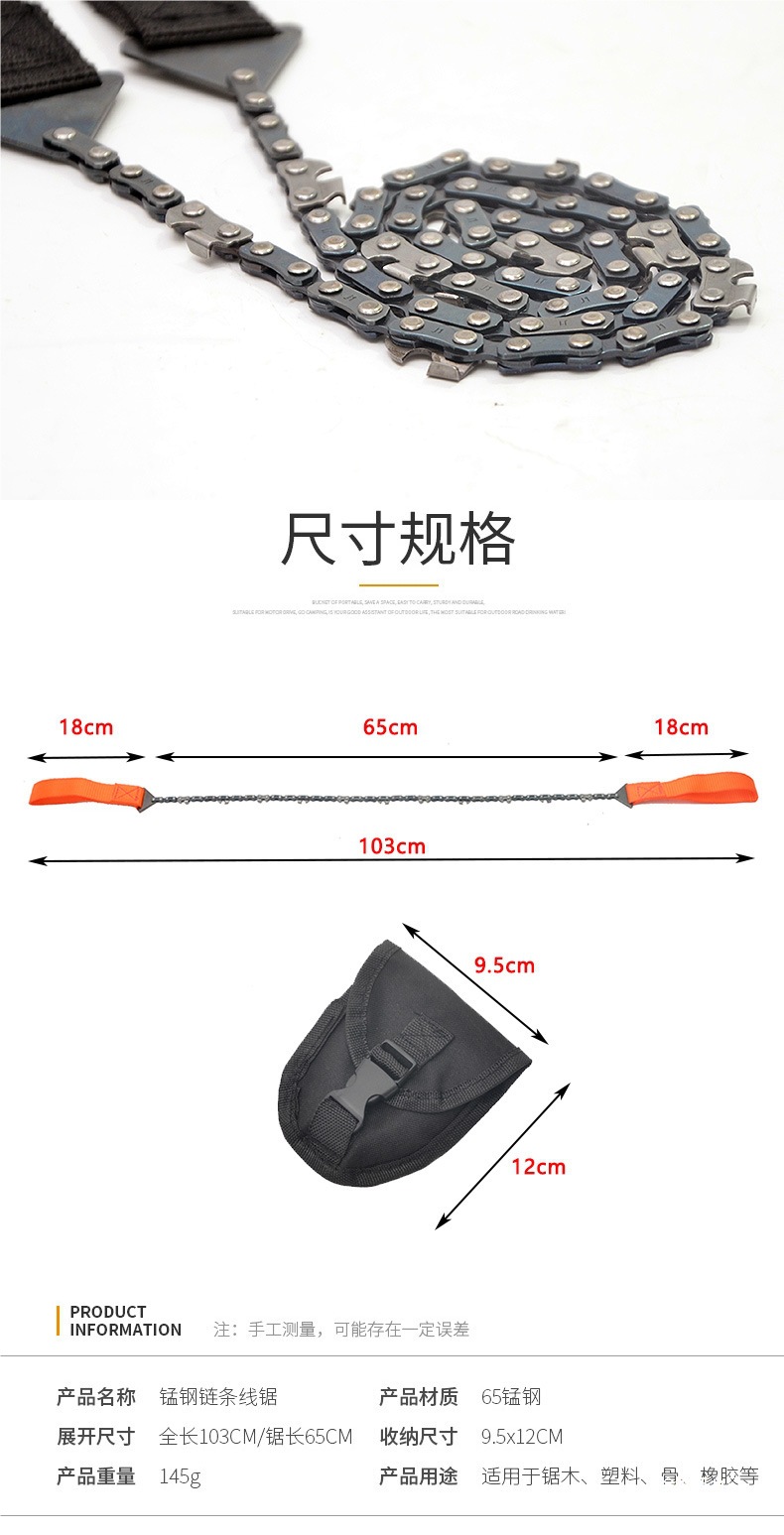 포켓 와이어 톱 천 가방 톱 24inch 휴대용 야외 캠핑 생존 핸드 지퍼 톱 11 치아 정원 절단기