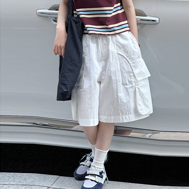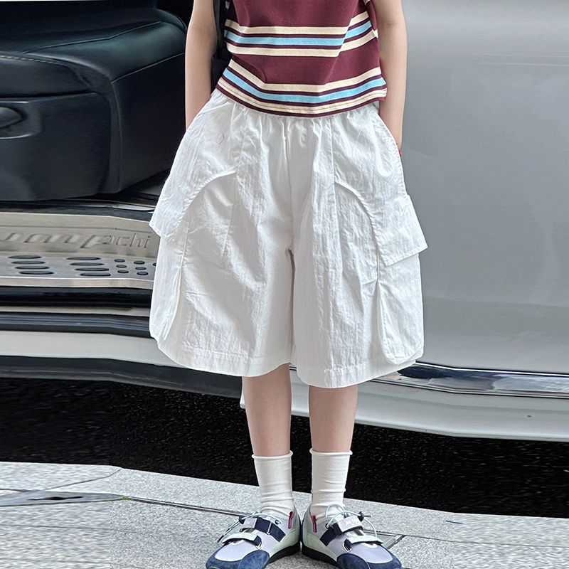여아용 루즈한 반바지, 얇은 아동 캐주얼 작업복 5부 바지, 2025년 여름 옷, 중대형 아동용 다용도 남아용 중간 바지스토어 가기