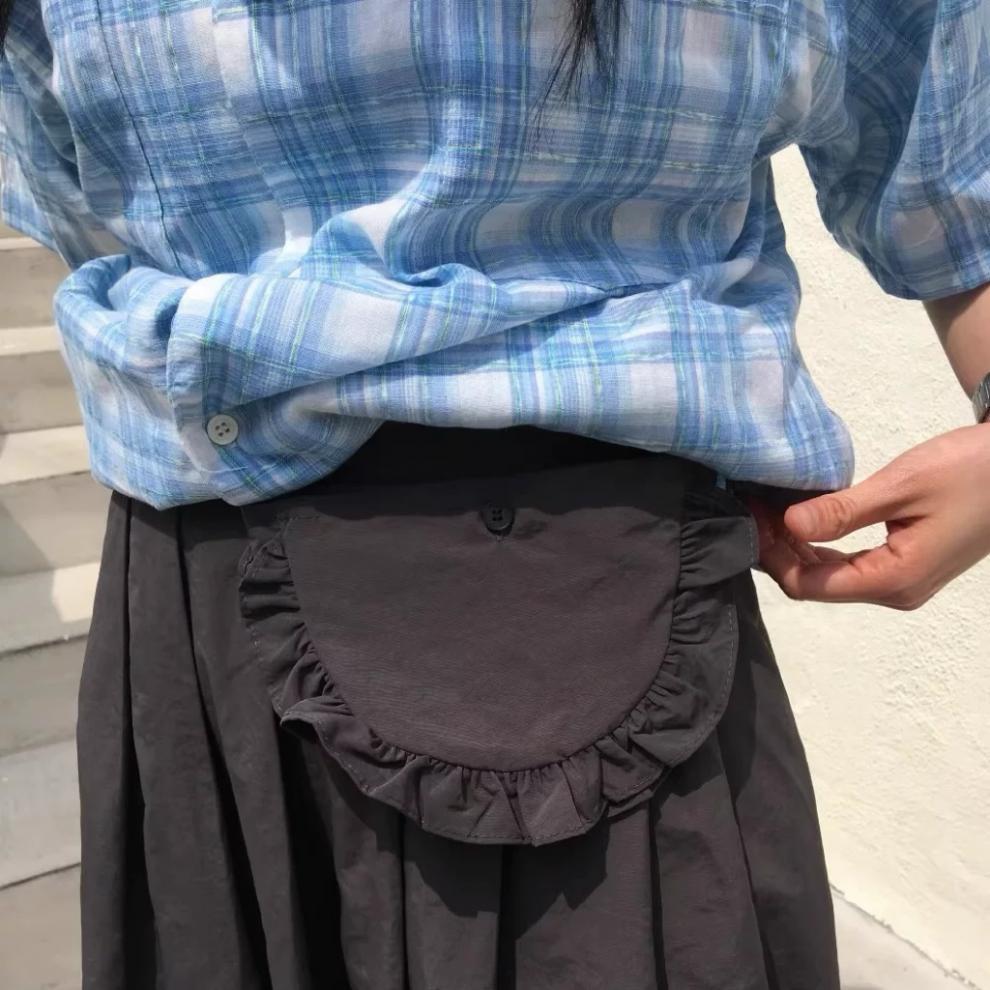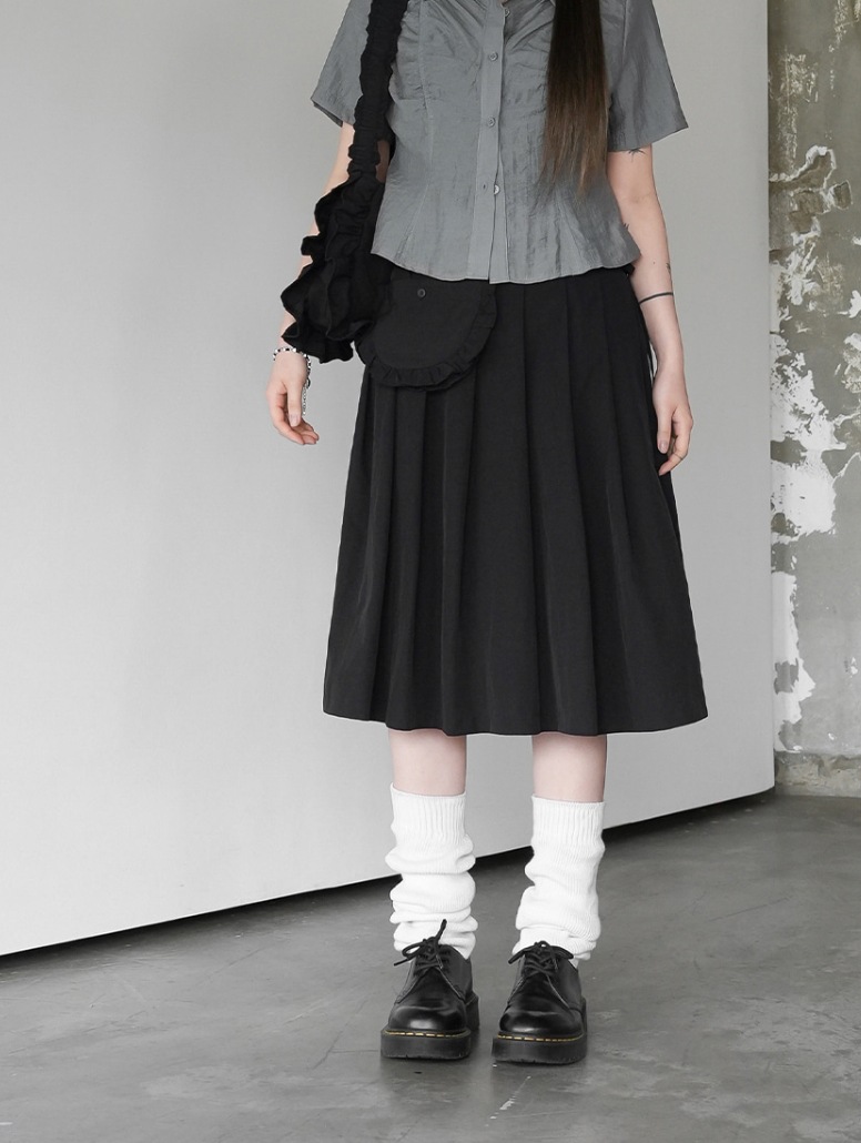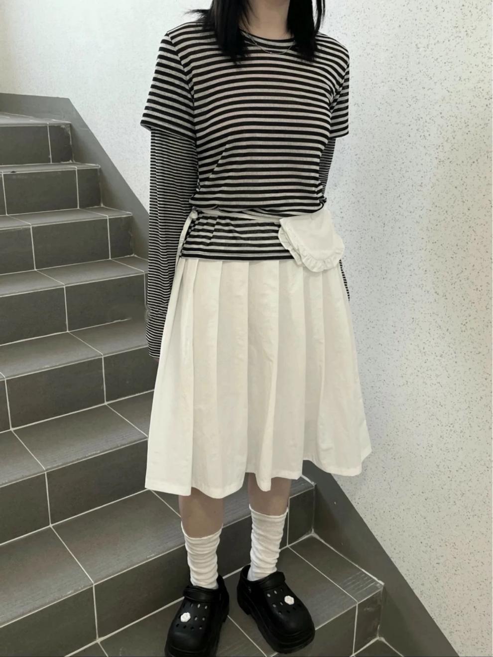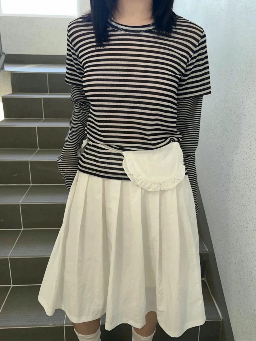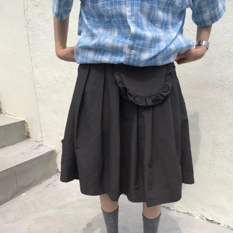 레트로한 일본풍 소녀들을 위한 나이를 줄여주는 스타일, 활용도 높은 슬림핏 하이웨이스트 플리츠 스커트, 레이스 끈 장식 미니백 3가지 색상