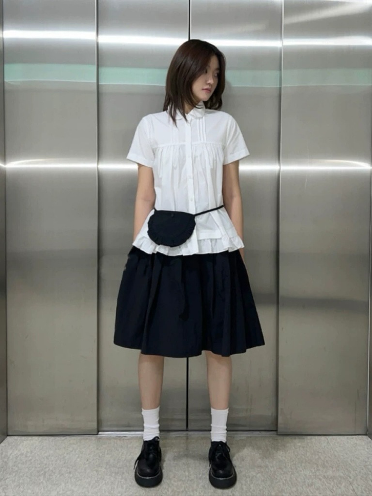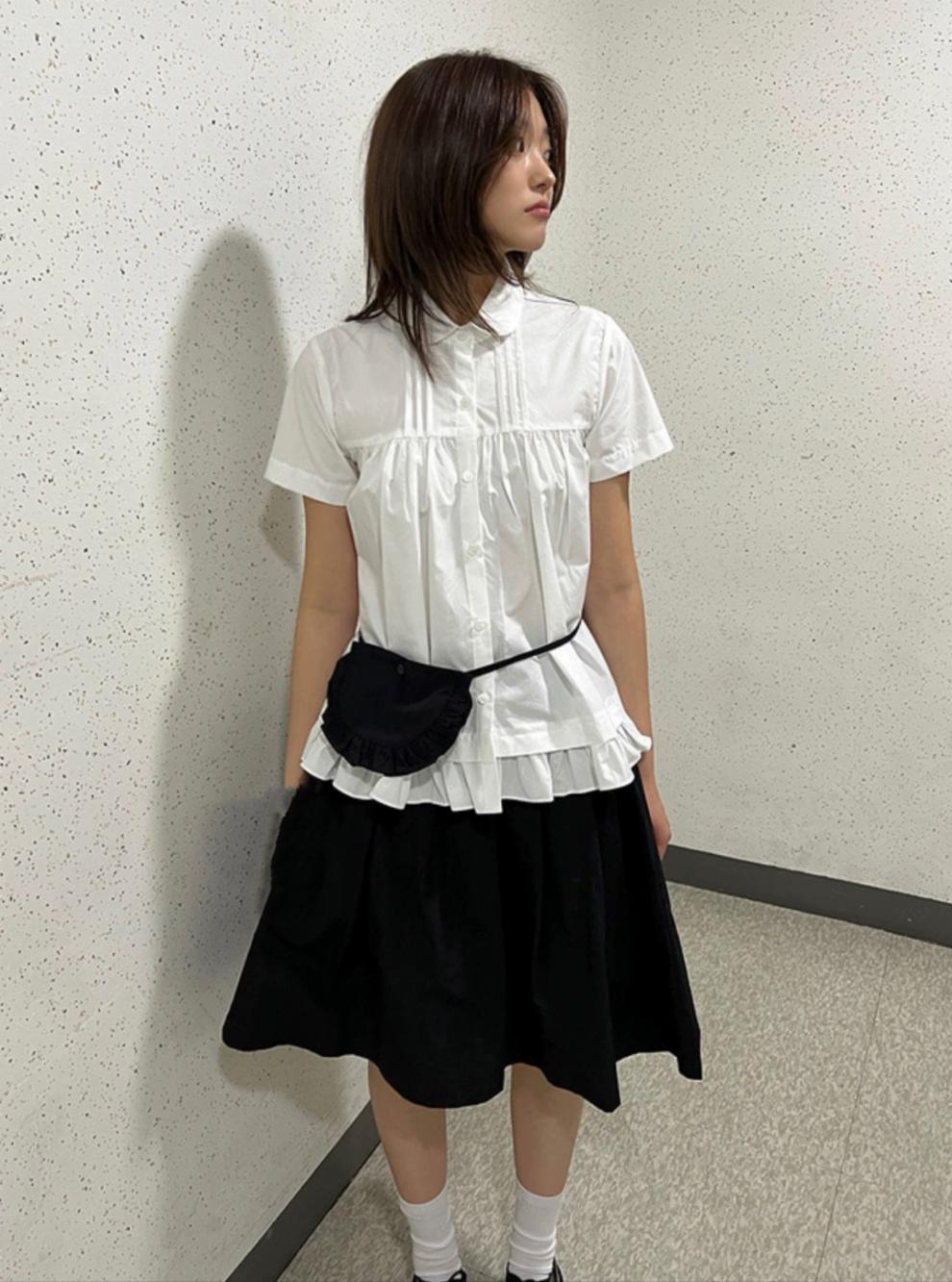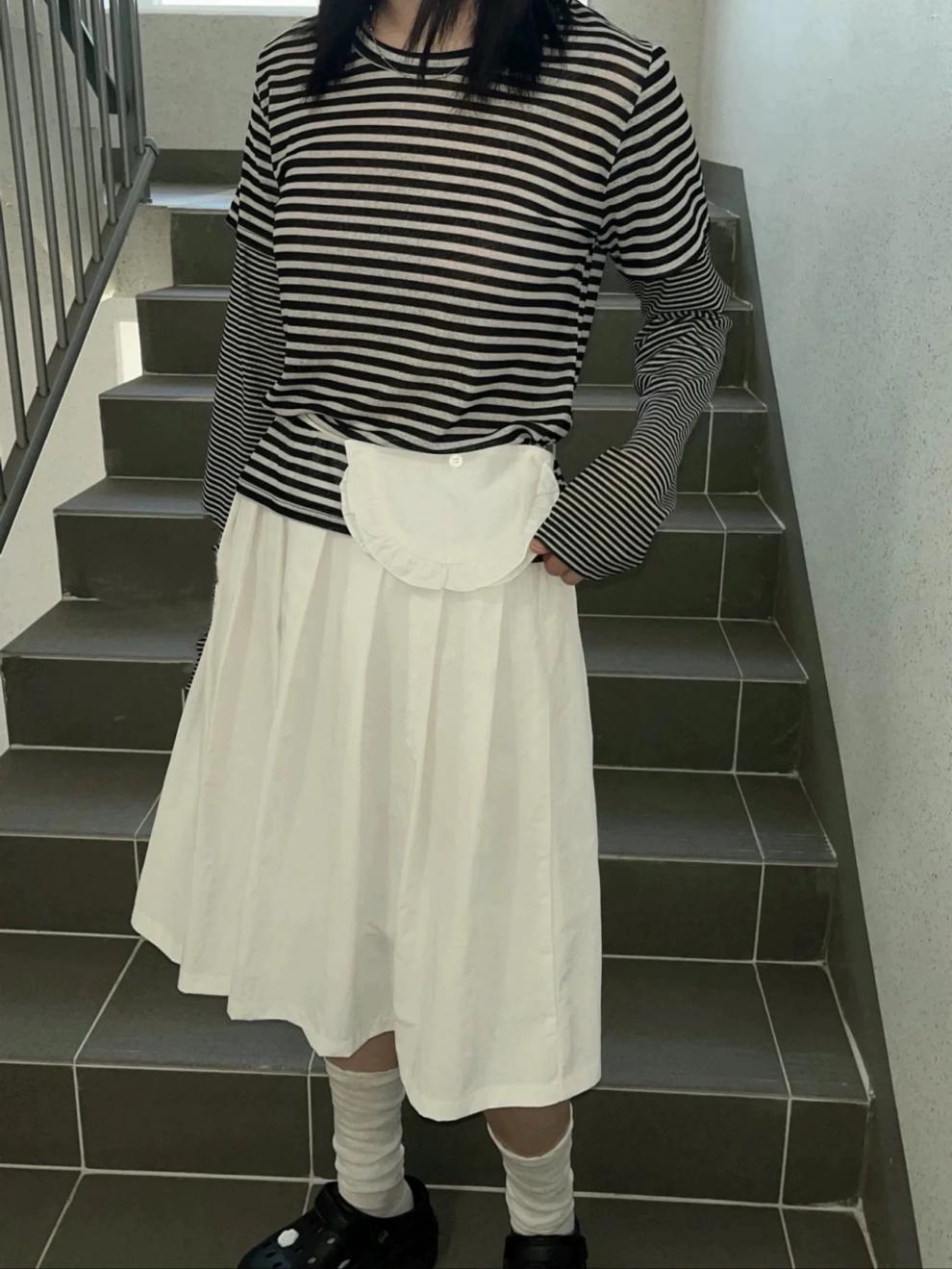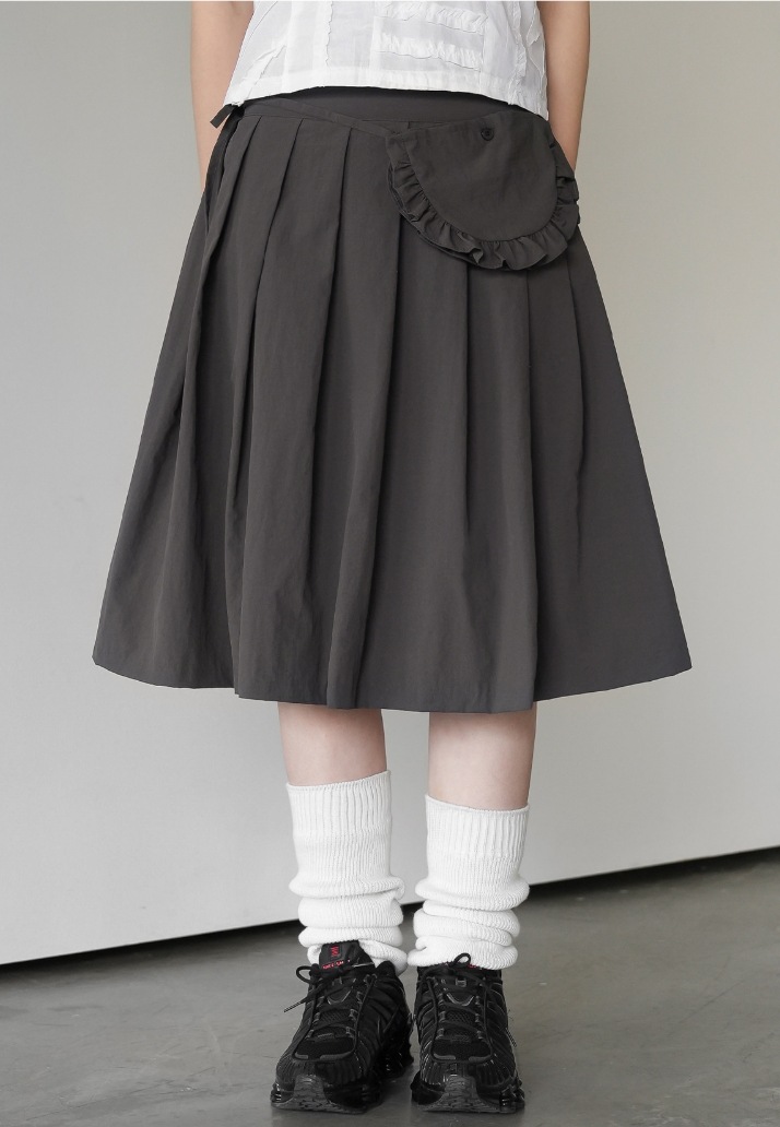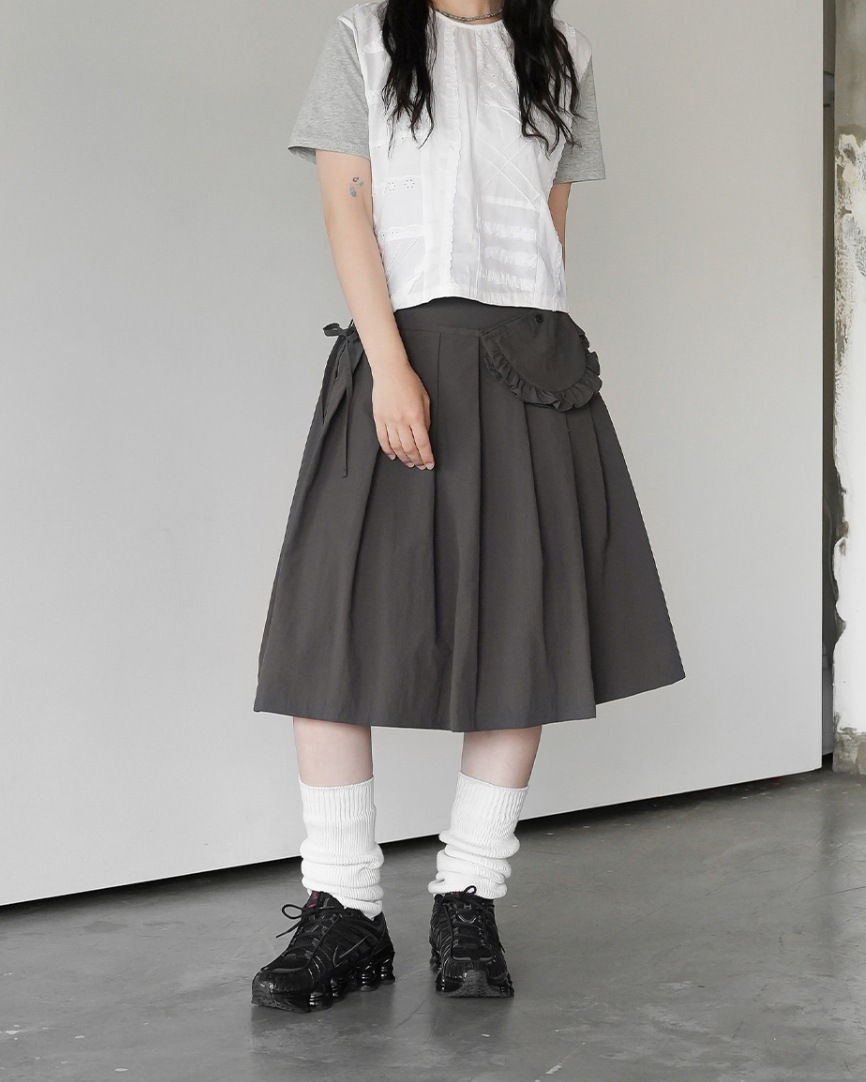 레트로한 일본풍 소녀들을 위한 나이를 줄여주는 스타일, 활용도 높은 슬림핏 하이웨이스트 플리츠 스커트, 레이스 끈 장식 미니백 3가지 색상