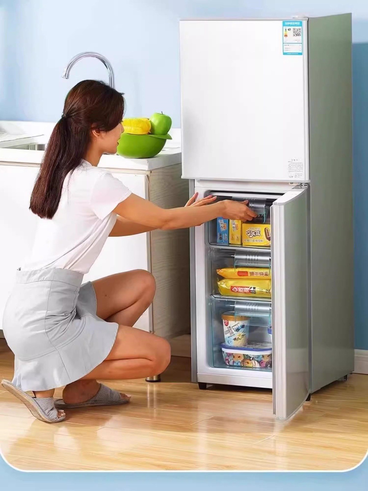 Meidi의 118L 양문형 공냉식 서리 방지 냉장고 가정용 소형 냉장 냉동 2인용 냉장고 무음