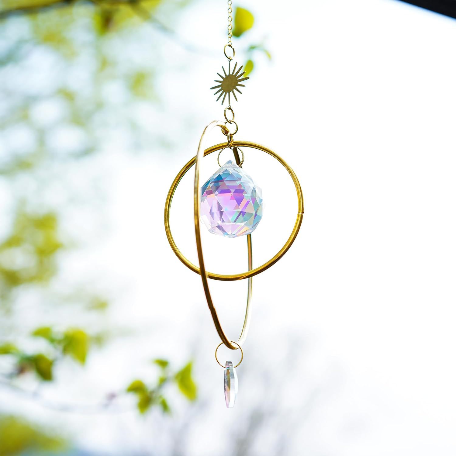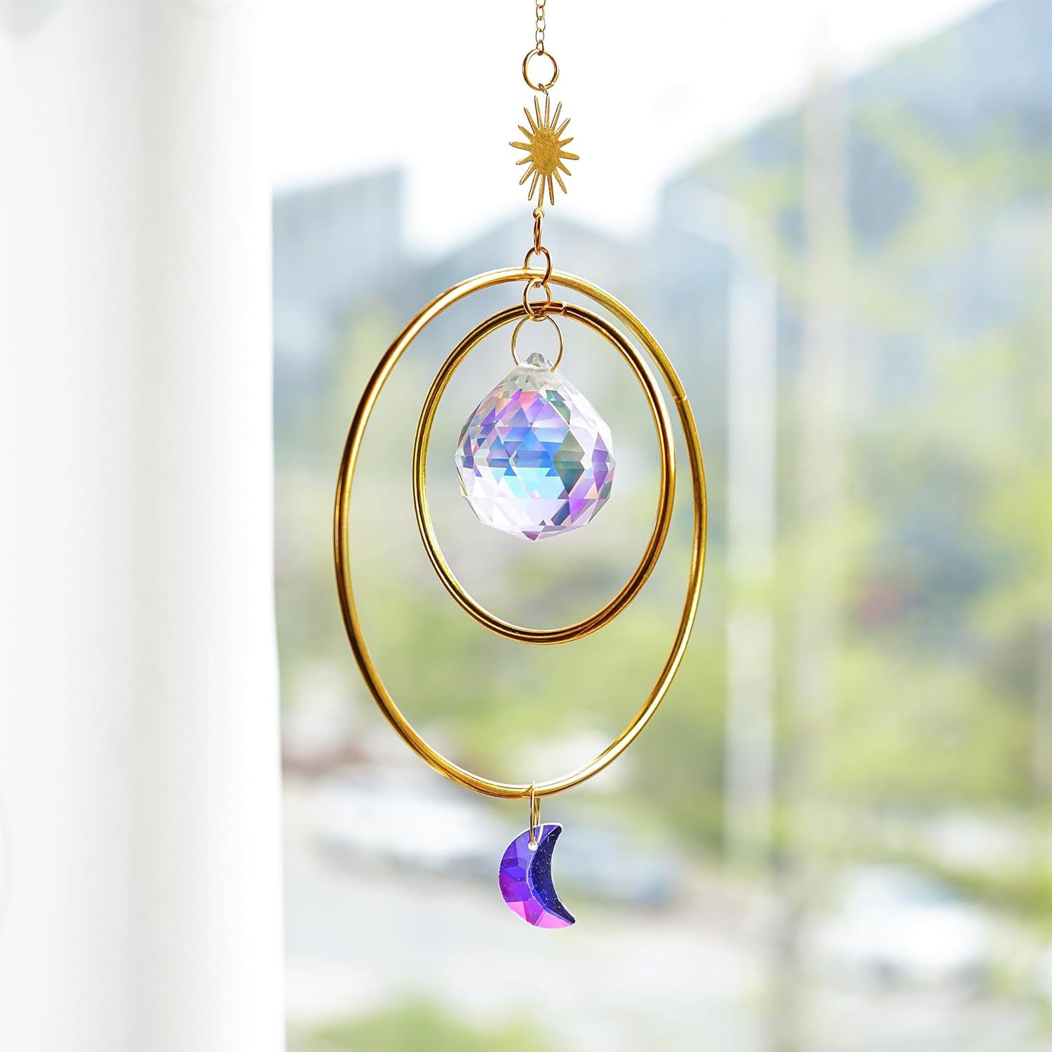 2 루프 태양과 달 suncatcher 크리스탈 풍경 펜던트 창 방 야외 장식 펜던트