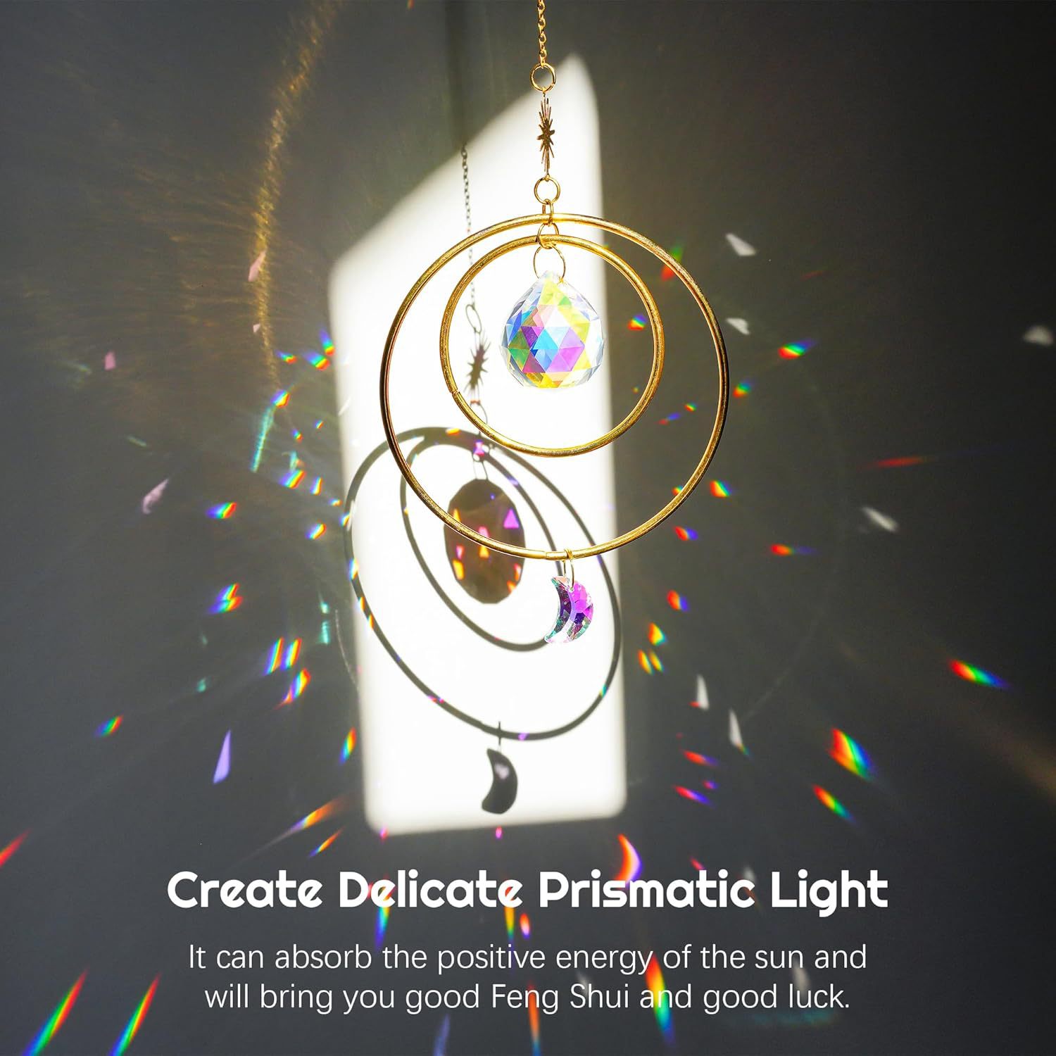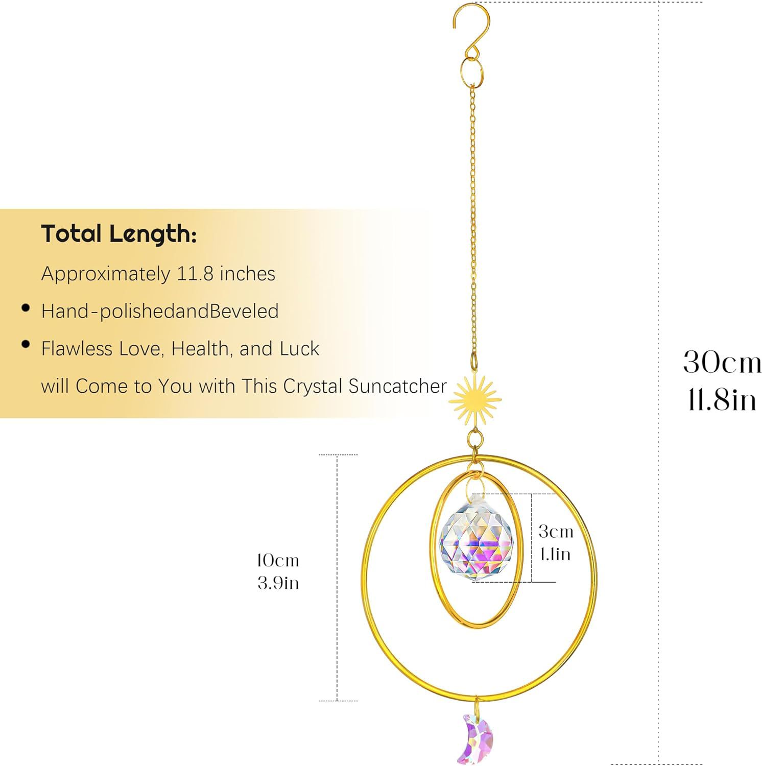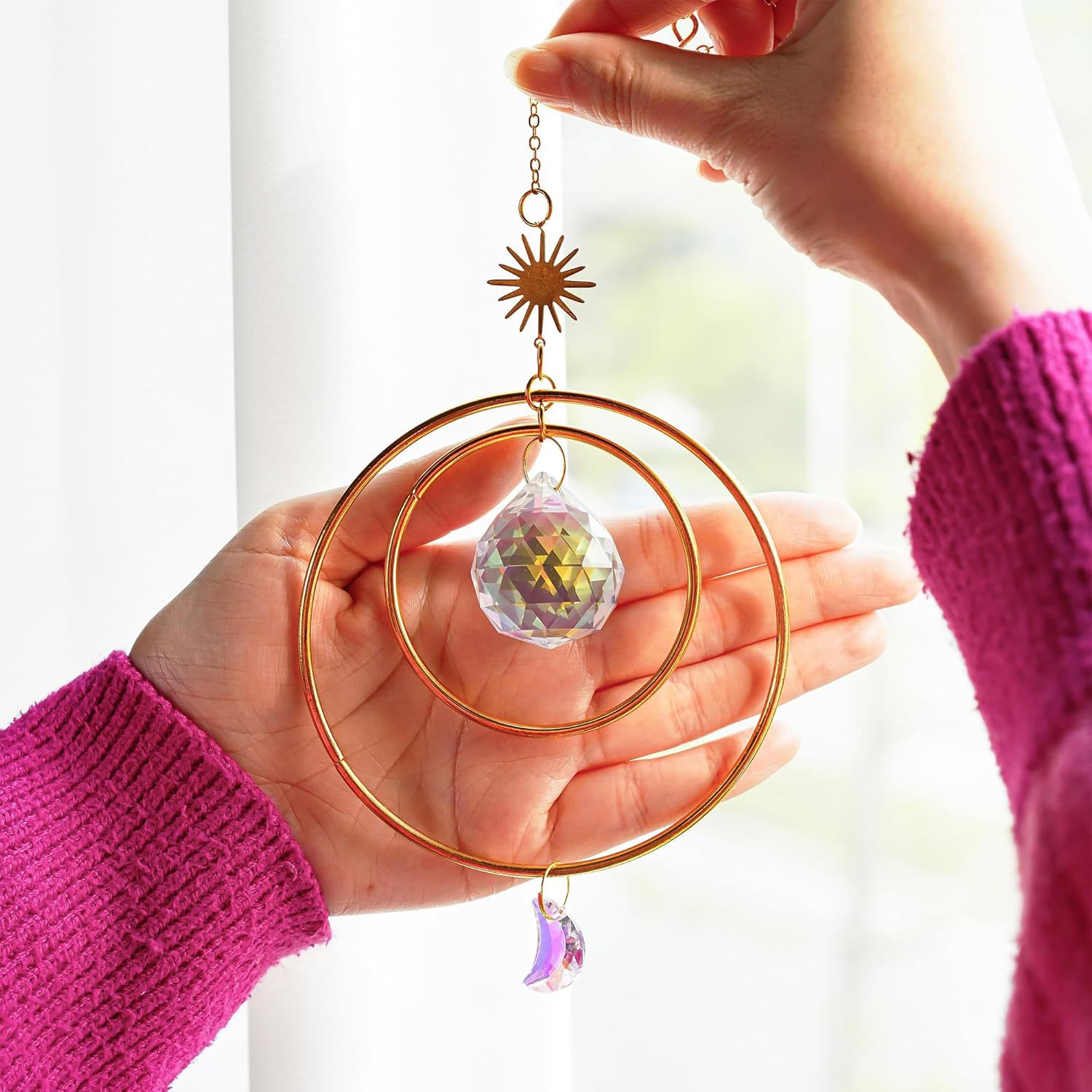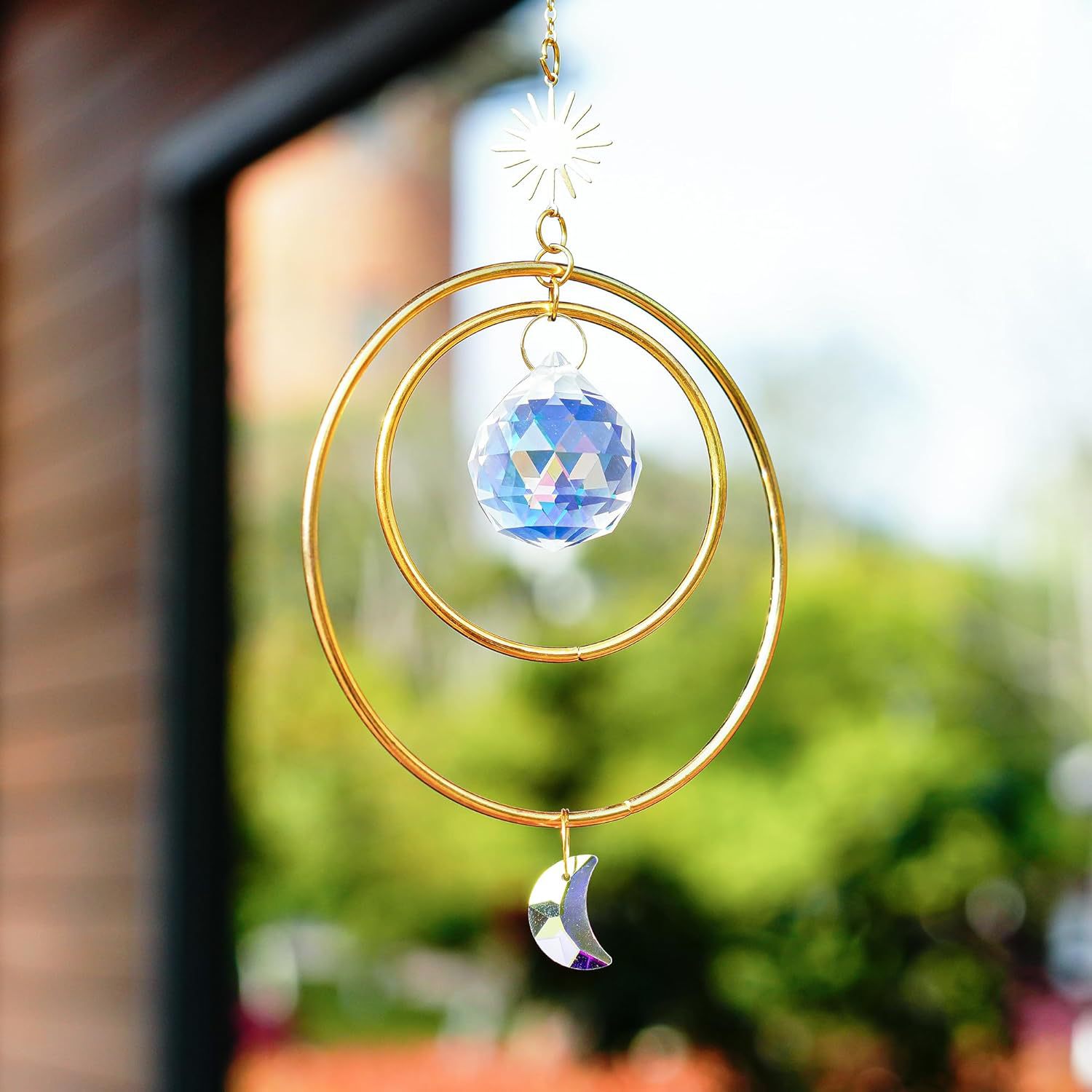2 루프 태양과 달 suncatcher 크리스탈 풍경 펜던트 창 방 야외 장식 펜던트스토어 가기