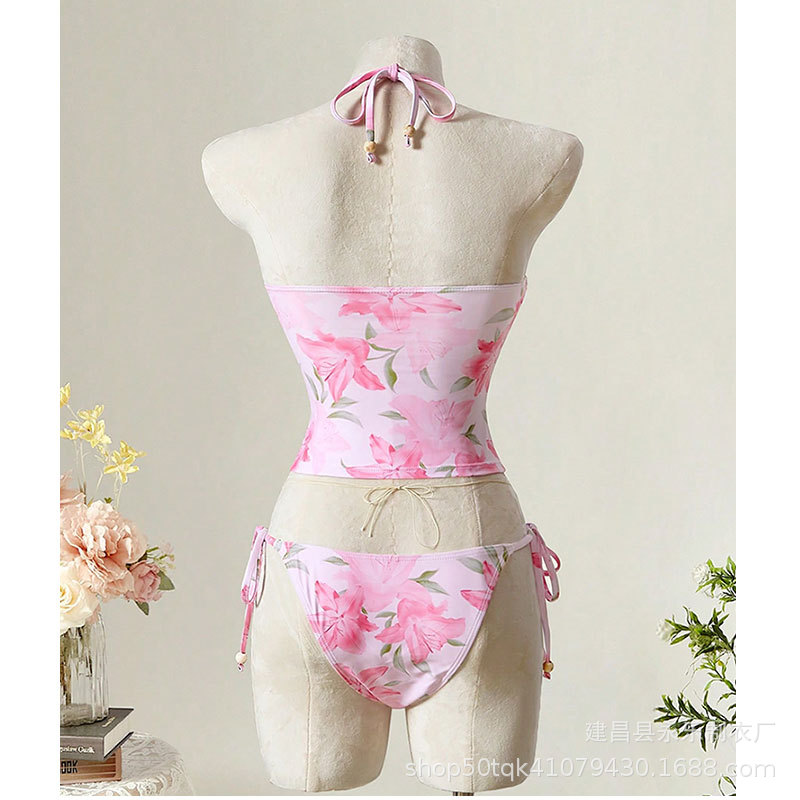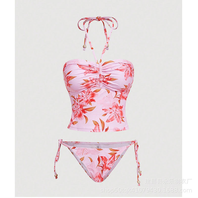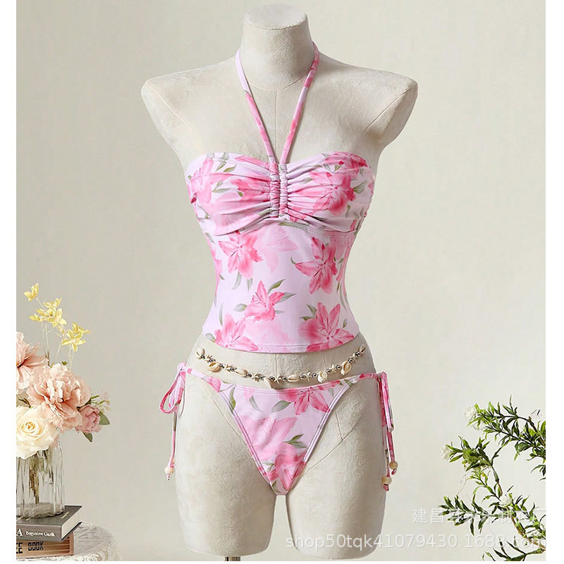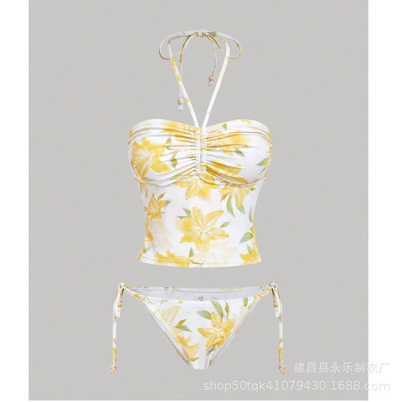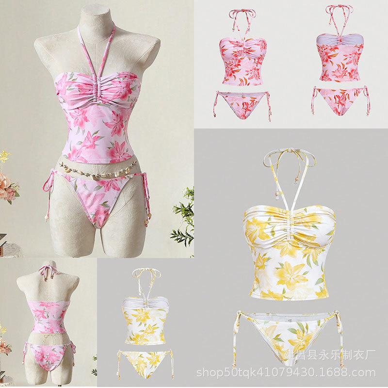 국경을 넘는 미국 트렌디 수영복 2025 섹시한 스플릿 핫 소녀 배꼽 밴드 슬리밍 여성 짧은 서스펜더 수영복스토어 가기