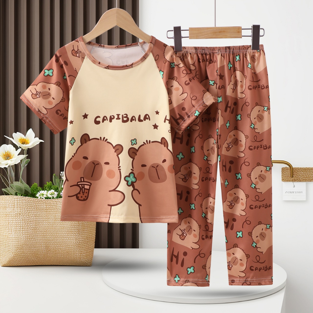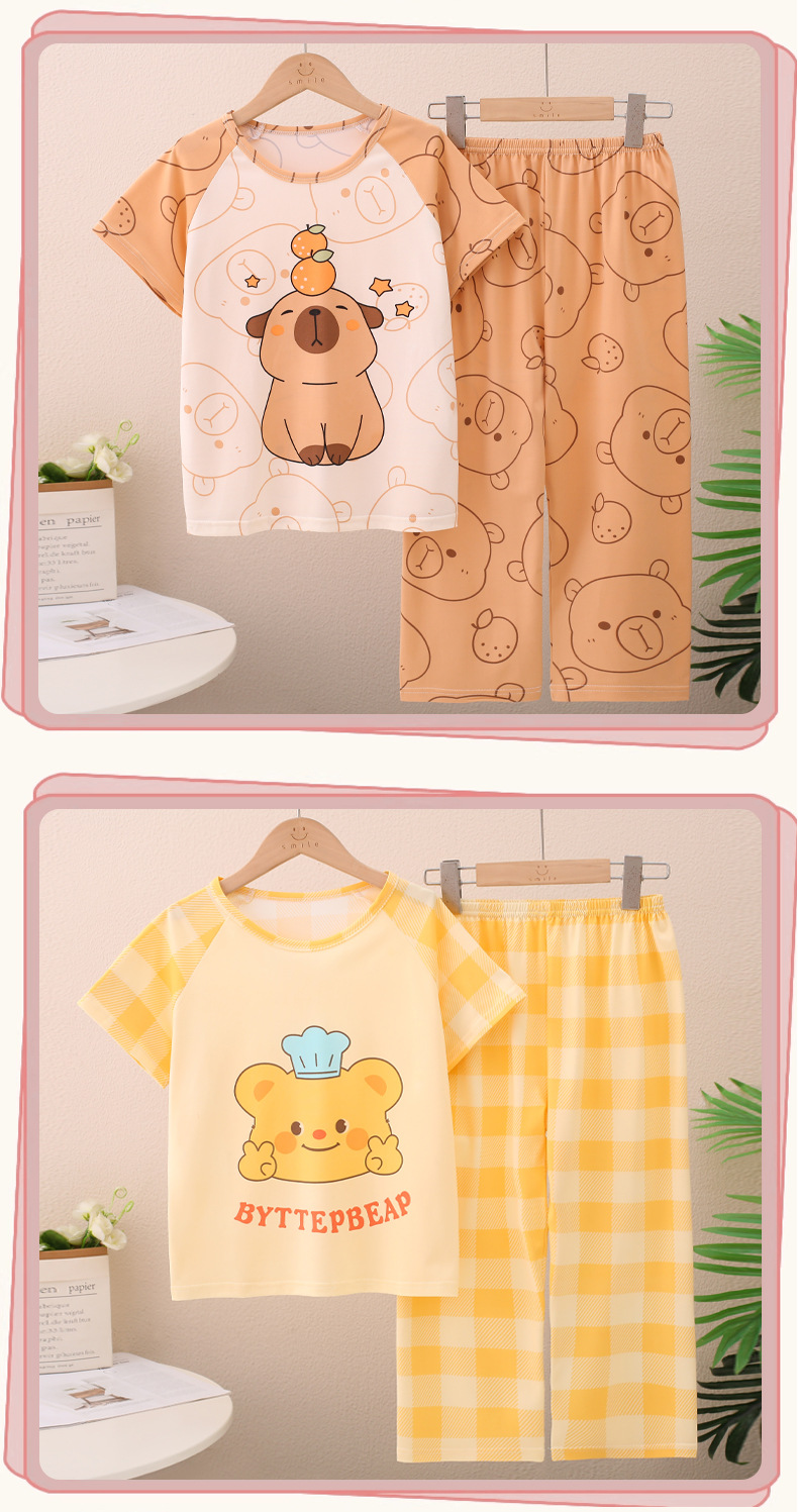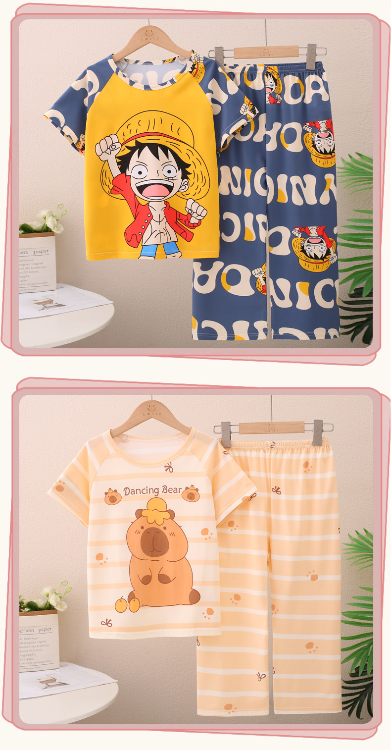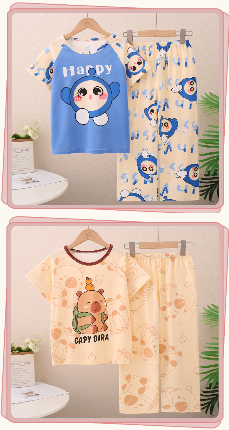 AliExpress 어린이 잠옷 여름 반팔 바지 동남 아시아 국경 간 대외 무역 중동 소녀 소년 가정 의류 세트