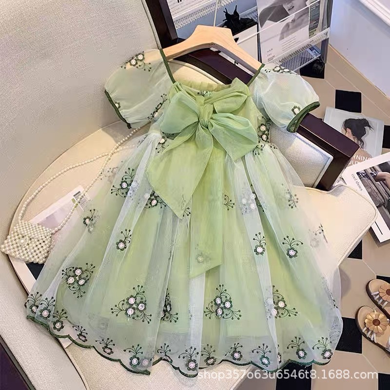 여자 아기 드레스 2025 새로운 여름 드레스 어린이 어린 소녀 유행 공주 드레스 퍼프 슬리브 메쉬 스커트스토어 가기