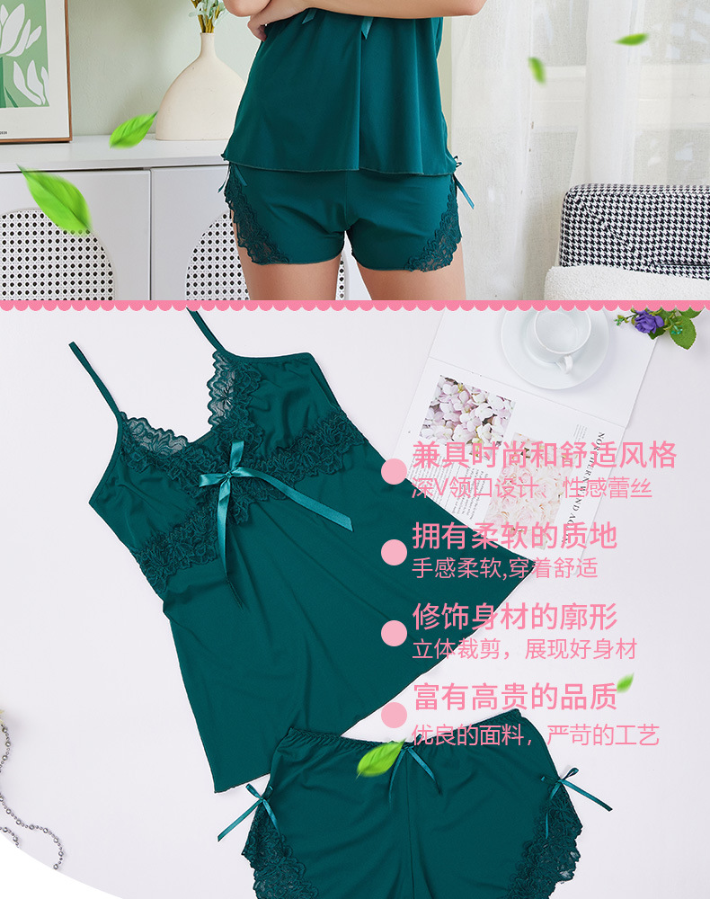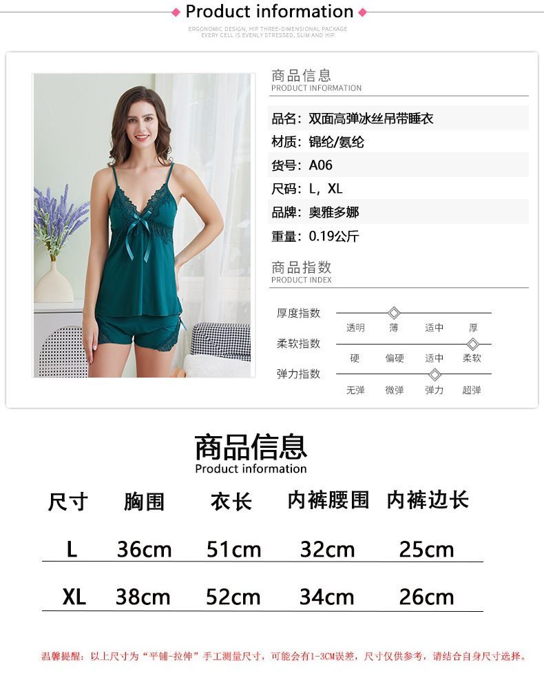 여성을위한 국경 간 양면 고탄성 얼음 실크 서스펜더 잠옷 투피스 세트 순수한 욕망 대형 느슨한 편안한 양복 홈 속옷스토어 가기