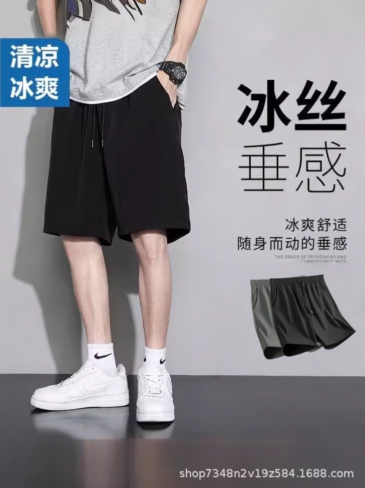 아메리칸 워크웨어 스포츠 5부 팬츠 남성 비치 팬츠 속건 아이스 실크 반바지 남성 여름 아우터 캐주얼 트렌디 브랜드