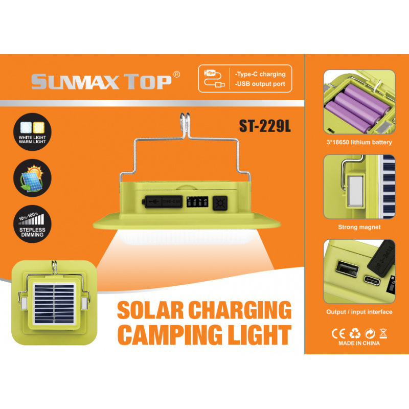 태양광 야외 텐트 캠핑 라이트 비상 충전 휴대용 고휘도 야시장 조명 캠핑용