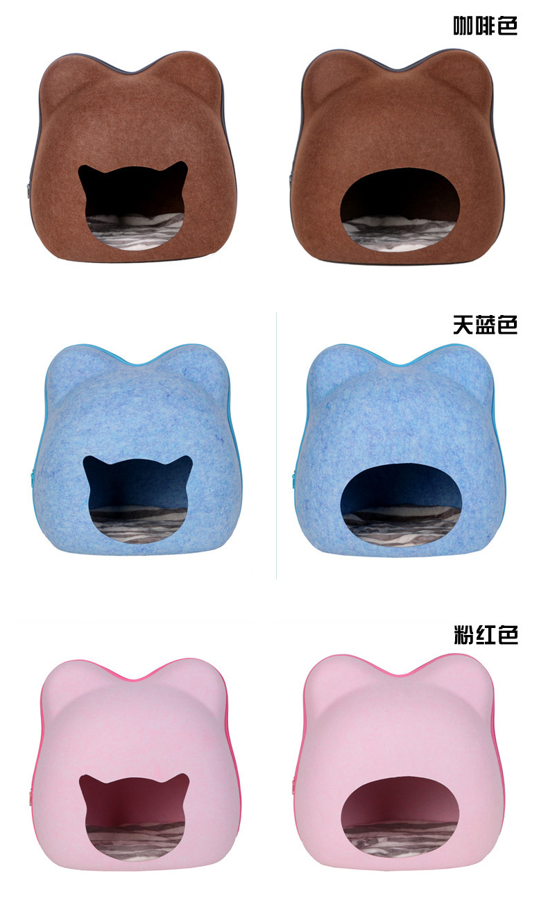 펠트 고양이 둥지는 휴대가 간편하고 반밀폐형 애완동물 둥지입니다. 창의적인 고양이 모양의 고양이 둥지는 통기성이 뛰어나고 사계절 내내 사용할 수 있습니다.