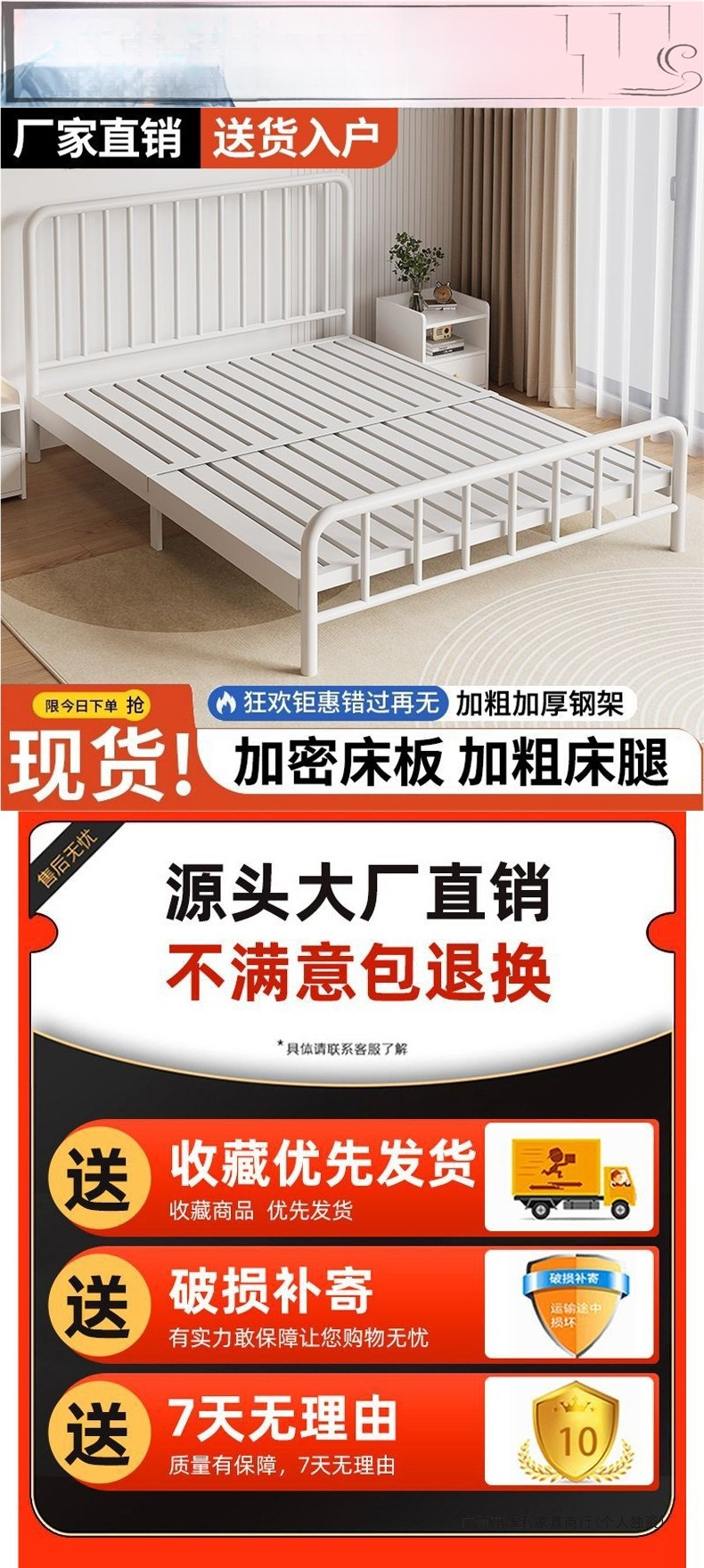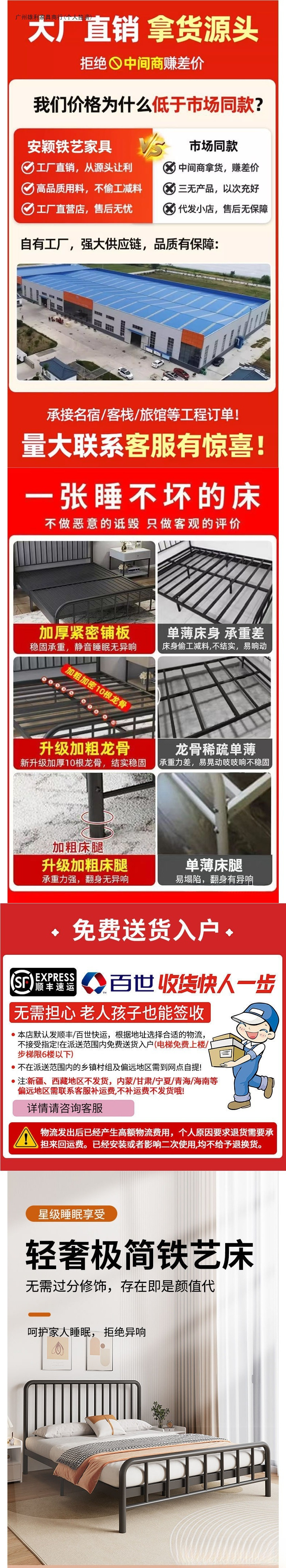 내구성이 뛰어난 심플한 철제 침대 더블 침대 1.8m 철제 침대 싱글 1.6m m 철제 프레임 침대 홈 렌탈 룸 인터넷 연예인스토어 가기