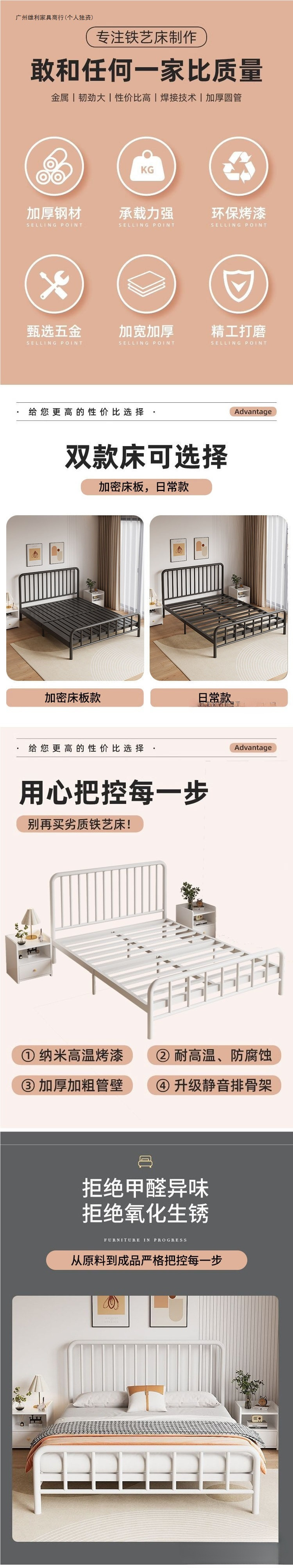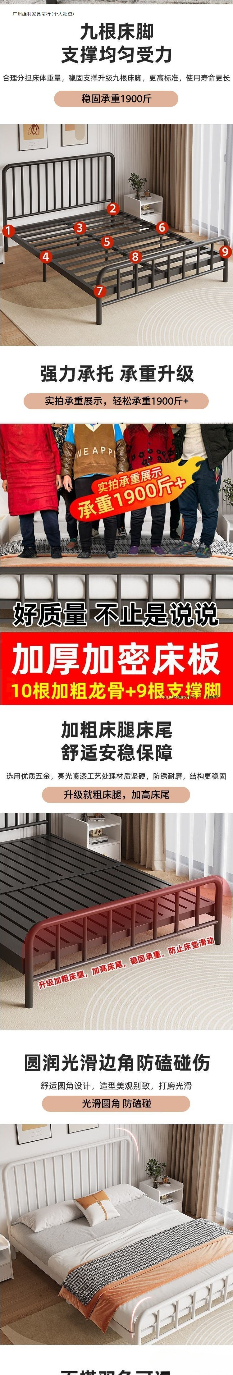 내구성이 뛰어난 심플한 철제 침대 더블 침대 1.8m 철제 침대 싱글 1.6m m 철제 프레임 침대 홈 렌탈 룸 인터넷 연예인