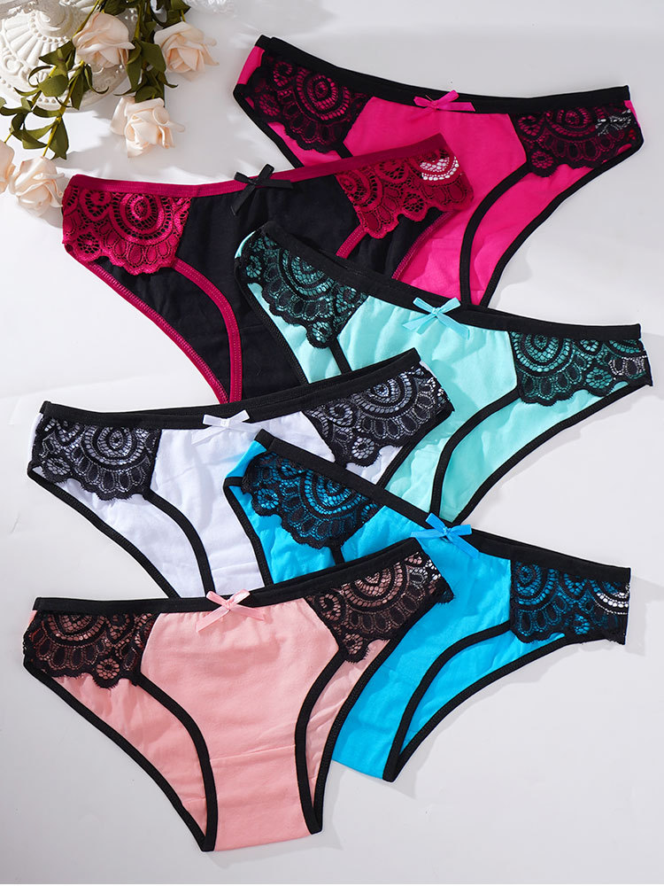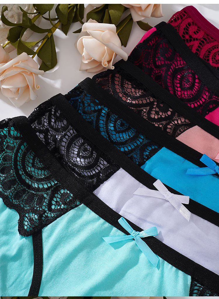 2025년형 유럽 사이즈 레이스 스티치 여성 속옷 통기성 단색 소녀 여성 삼각 팬티스토어 가기