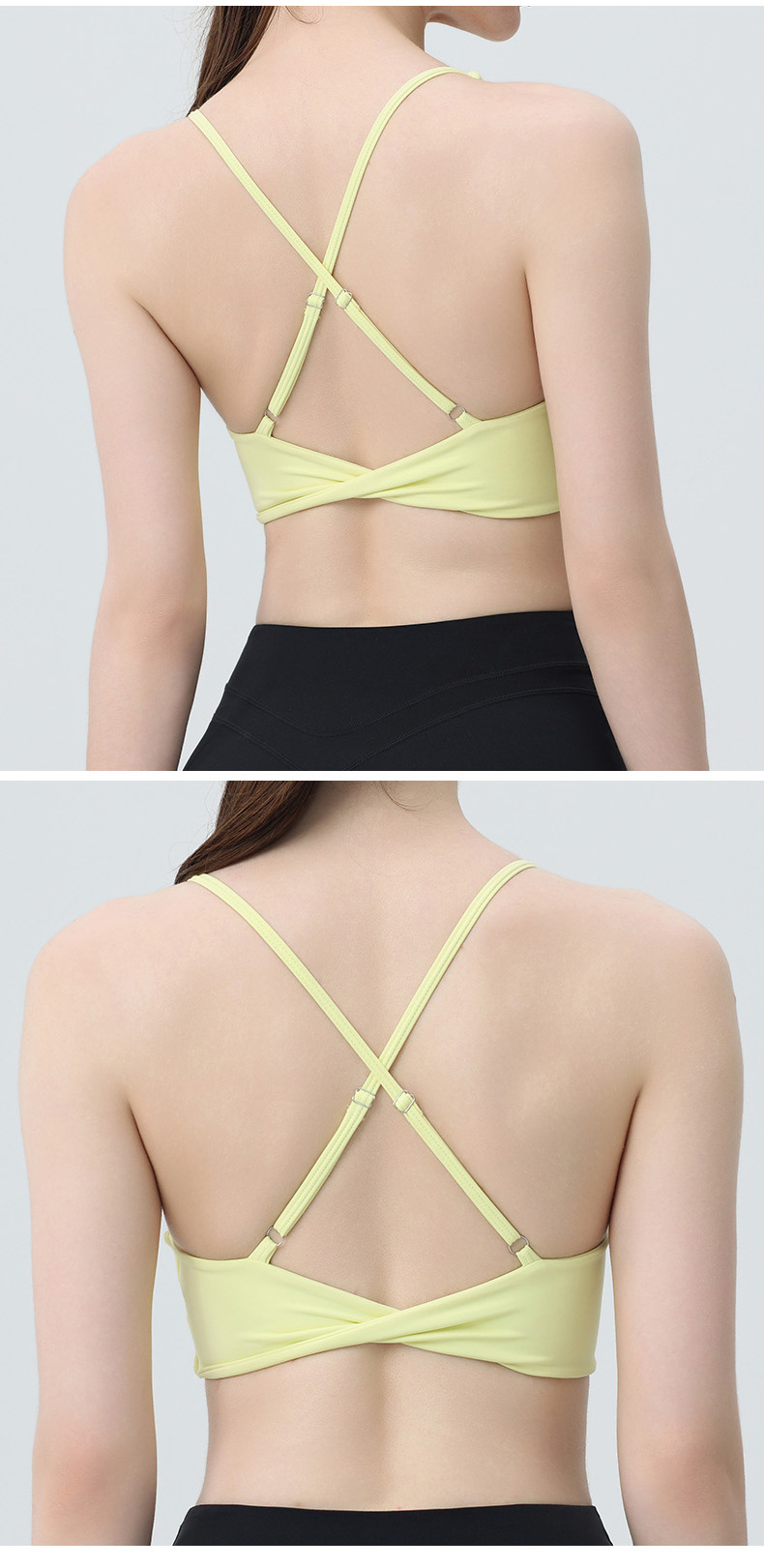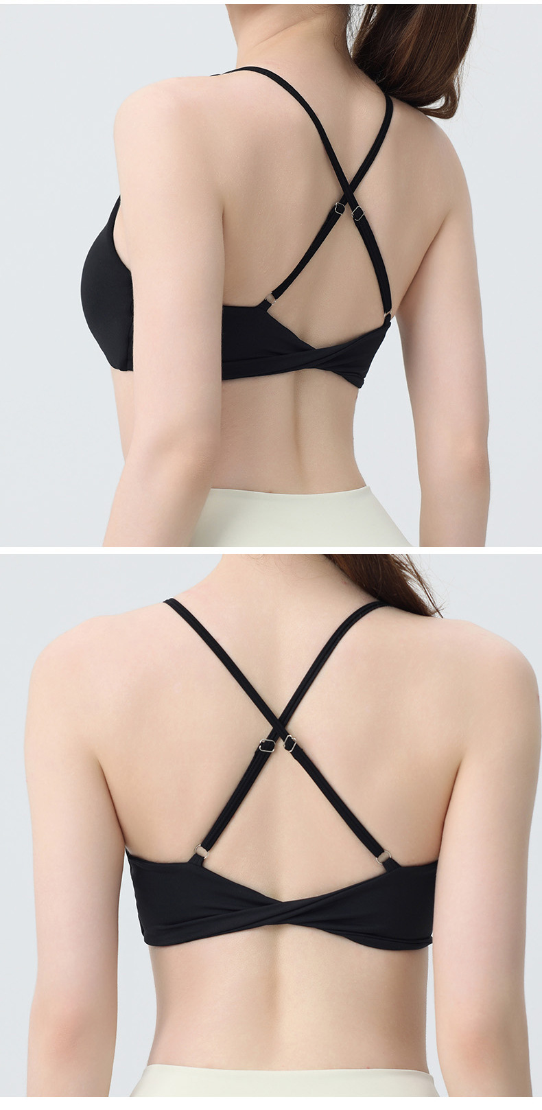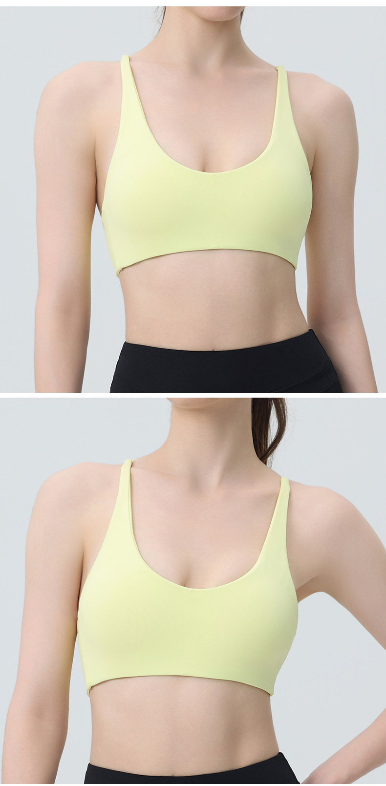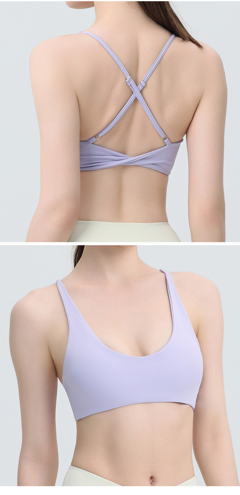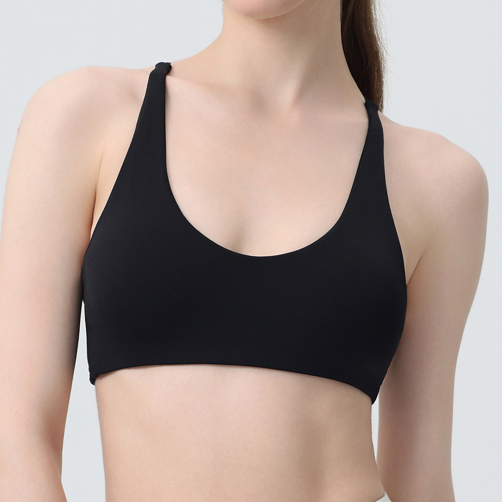 국경 간 유럽과 미국의 피트니스 요가 의류 여성용 브래지어 누드 민소매 가슴 패드 포함 푸시 업 충격 방지 스포츠 러닝 속옷