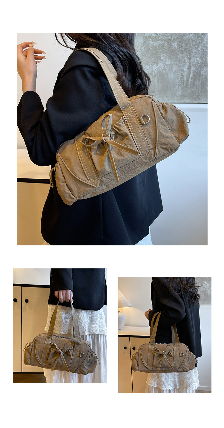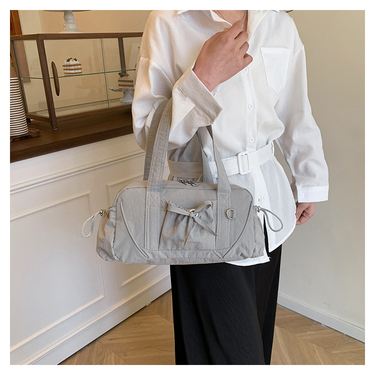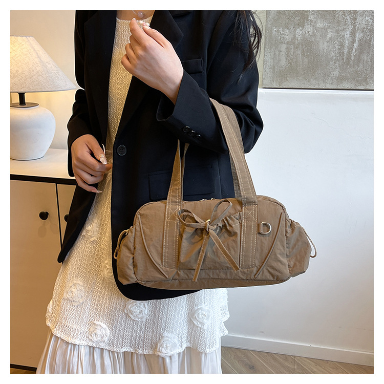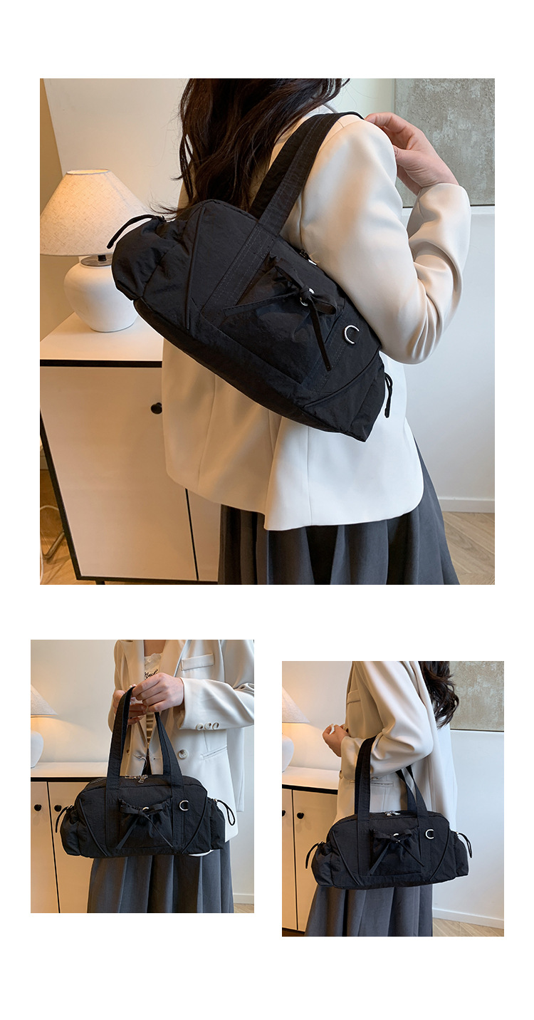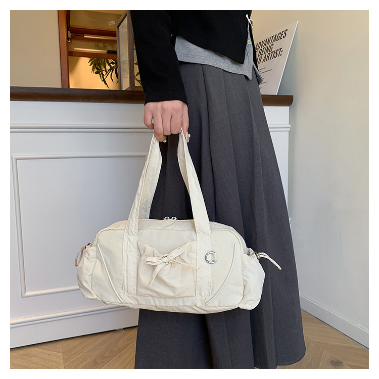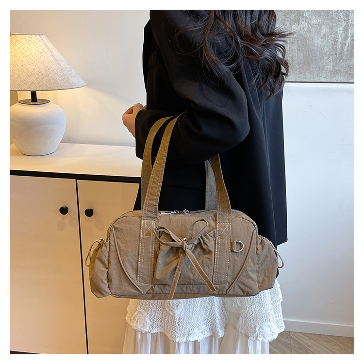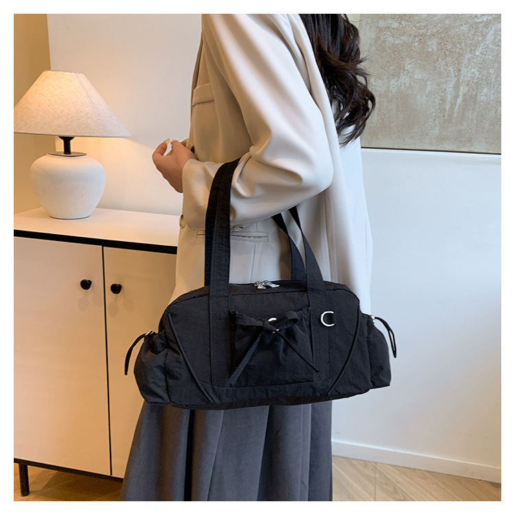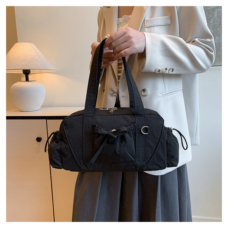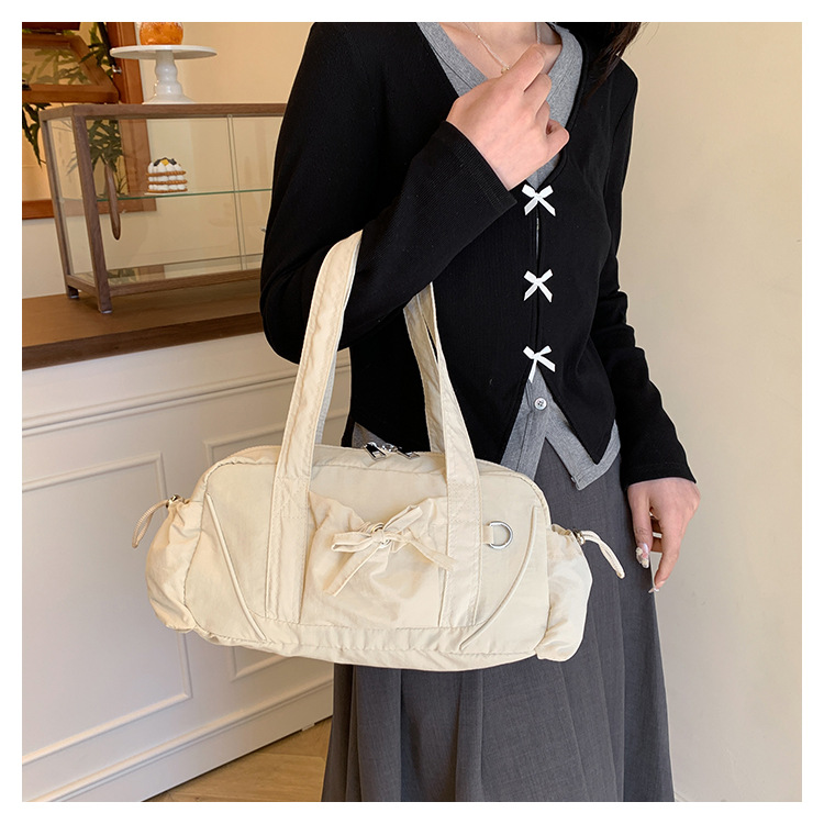 여성을위한 한국 틈새 나일론 캐주얼 숄더 백 2025 여름 간단하고 다재다능한 보우 휴대용 보스턴 백스토어 가기