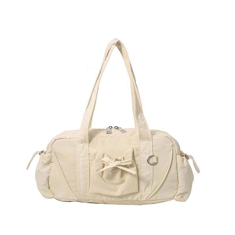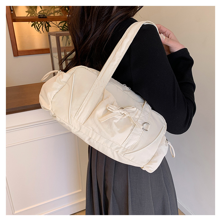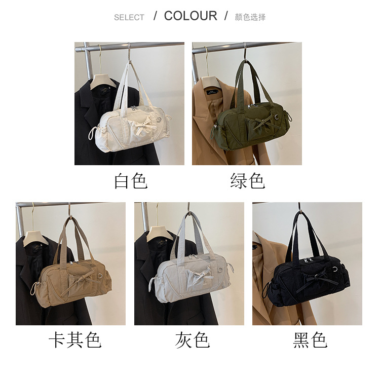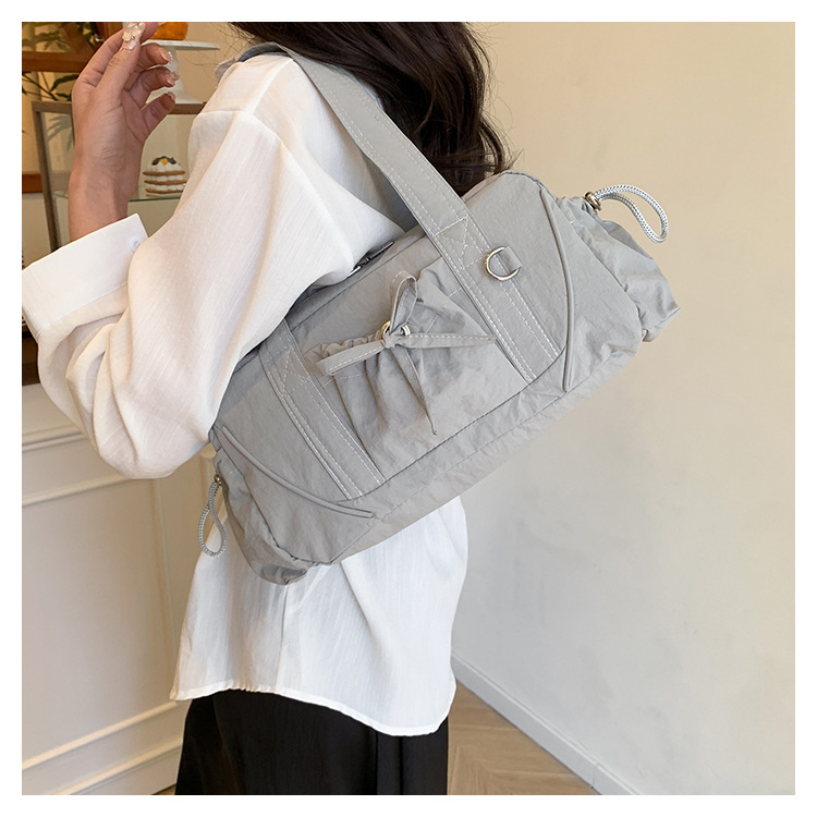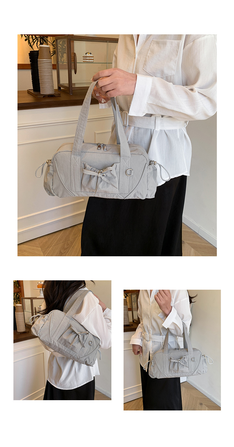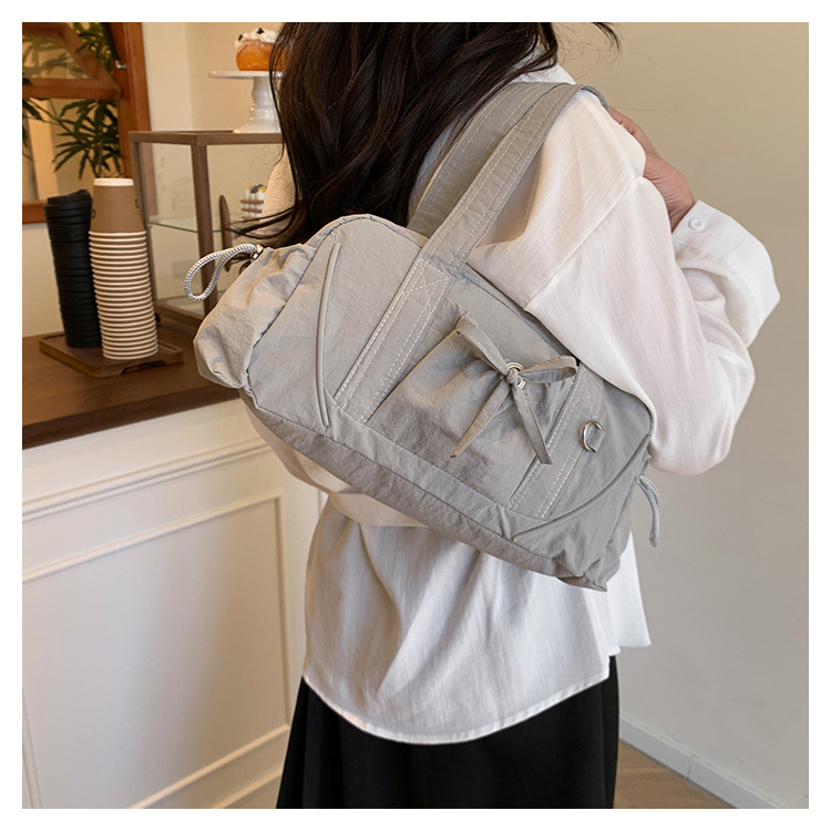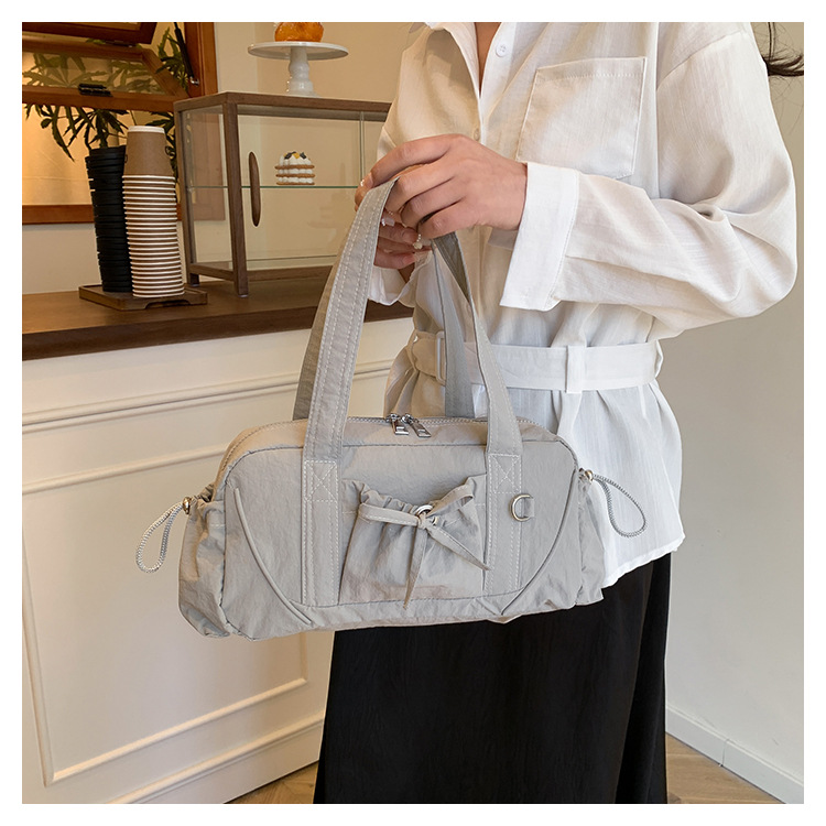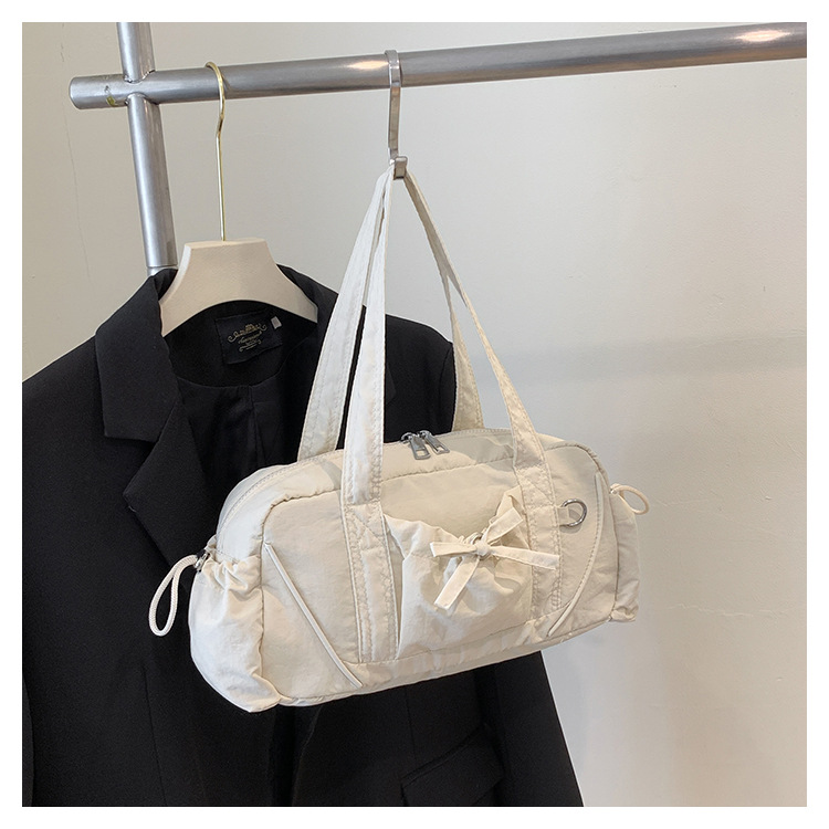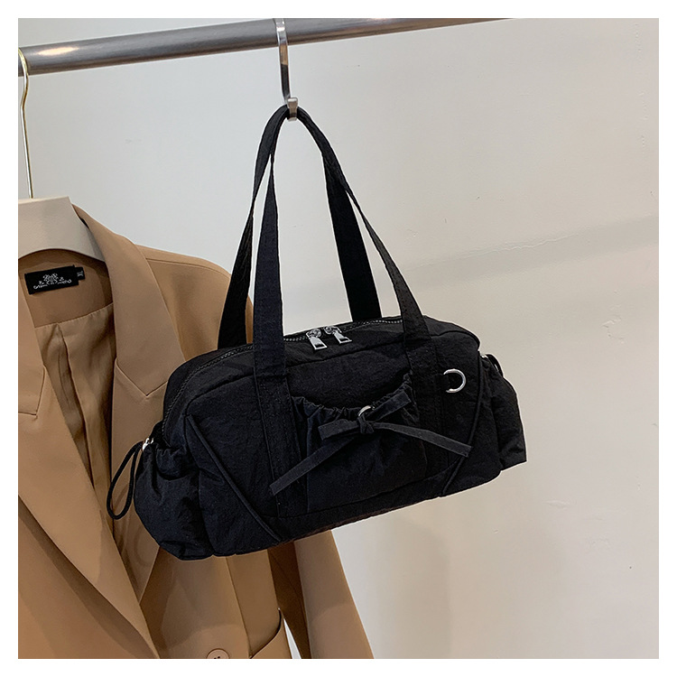 여성을위한 한국 틈새 나일론 캐주얼 숄더 백 2025 여름 간단하고 다재다능한 보우 휴대용 보스턴 백스토어 가기